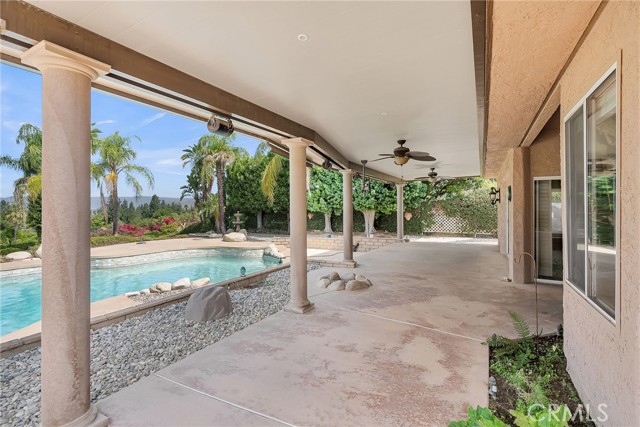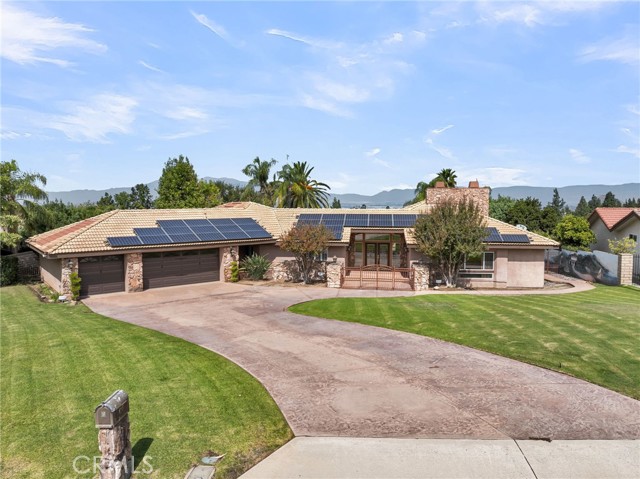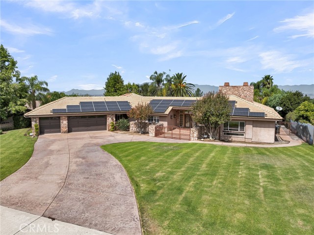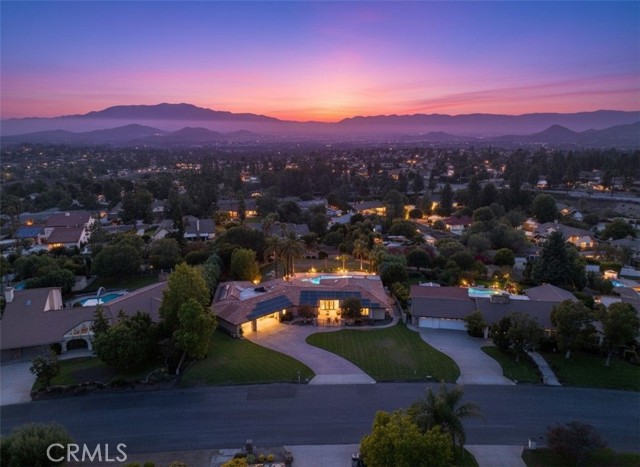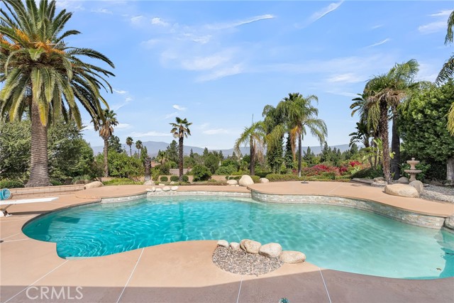 Sited on an elevated lot in Hillcrest, this sprawling single-story residence captures panoramic views over Downtown Riverside and the surrounding mountains, while offering a rare combination of privacy and open space. A stained and stamped driveway, flanked by mature landscaping, descends to a gated front courtyard. Inside, spacious living areas are accented by arched entryways, two stone fireplaces, and rich finishes. Large picture windows are thoughtfully placed, allowing the views to be omnipresent throughout the larger balance of the home. The open kitchen serves as the heart of the home, featuring granite countertops, a center island with gas cooktop, custom cabinetry, breakfast bar, and a dining niche. From here, expansive windows overlook the resort-style backyard, sweeping views, and mature landscape. The floorplan unfolds down a central hallway, flowing seamlessly between formal and informal spaces. Lovingly cared for, and thoughtfully enhanced, by the same owners for the past 40 years, this property reflects a sincere pride of ownership. The primary suite is a true retreat, highlighted by a uniquely spacious dressing room with built-in custom cabinetry and organizers, vanity station, and a center island of large drawers. Additional bedrooms and flex spaces provide versatile options for guests, a home office, or multi-generational living. Outdoors, a sparkling pool and spa take full advantage of the elevated vantage point, surrounded by manicured grounds designed for relaxation and entertaining. The raised spa is centrally located closer to the residence, both enhancing the views and integrating it into the social gathering areas for a seamless entertainment space. Just off the pool deck, an attached pool house offers a convenient ¾ bath for guests. A ribbon of lawn cascades down to the lower tier of the yard and connects with mature trees and bushes, completing the lot. Other notable features include an oversized 3-car garage, paid solar power system, and a generous .71 acre lot that feels tucked away yet is near local amenities, freeway access, University California at Riverside, and Downtown.
