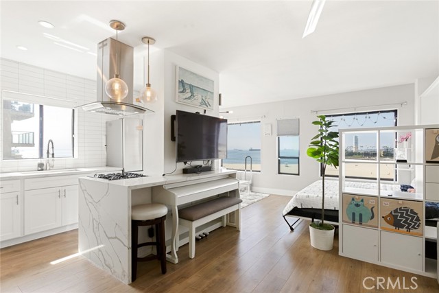 Experience beachfront living at its finest in the prestigious St. Regis Building! This RARE corner unit offers stunning 270-degree views of the Beach, Queen Mary, Harbor, and Marina. Imagine waking up to panoramic oceanfront scenes and the refreshing sea breeze through expansive picture windows. Unit 311 has been meticulously remodeled, showcasing a gorgeous kitchen with elegant Quartz countertops, sleek Stainless Steel Appliances, and custom subway tile backsplash with open wood shelving. Beautiful luxury vinyl plank flooring flow throughout. Large remodeled bathroom offers more gorgeous subway tile with a stunning glass enclosure for the tub/shower combo. This unit comes FULLY FURNISHED so all you have to do is show up. The St. Regis Building boasts an unbeatable location on Alamitos Beach, with a communal terrace that provides sweeping coastal views, a secure bike and scooter storage area, and a spacious community laundry room. Step right outside for direct beach access, and enjoy the bustling energy of Downtown Long Beach, with its wide array of restaurants, attractions, and nightlife just moments away. Monthly parking options are conveniently available at US Bank, Chase Bank, the Marriott, and several nearby parking garages. The LOW HOA covers gas, water, trash, and electricity, making this a truly hassle-free beachside retreat.