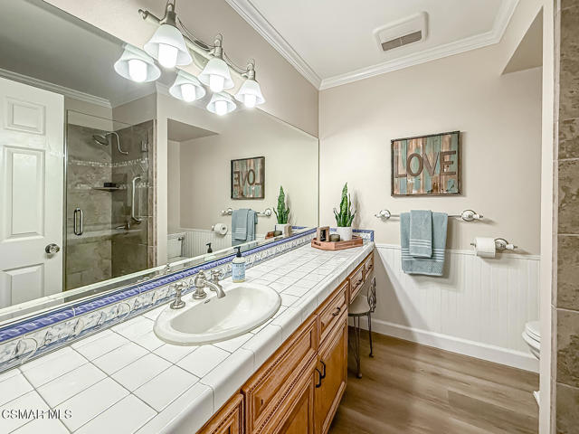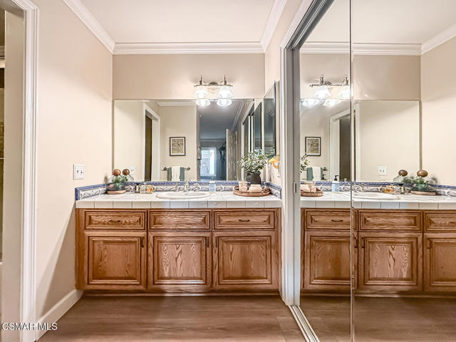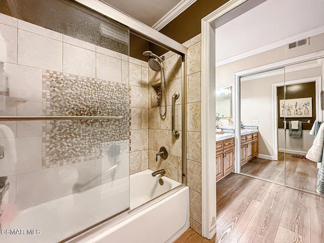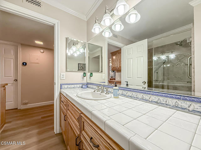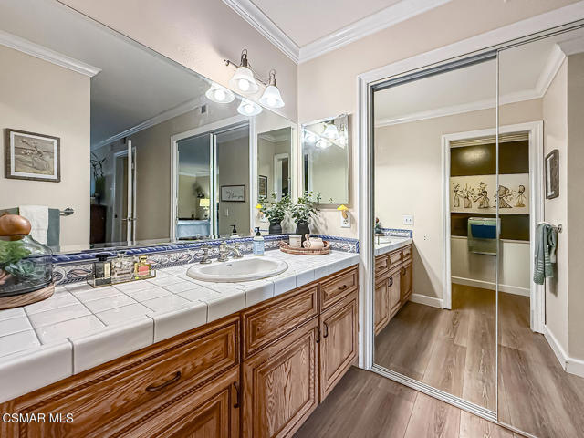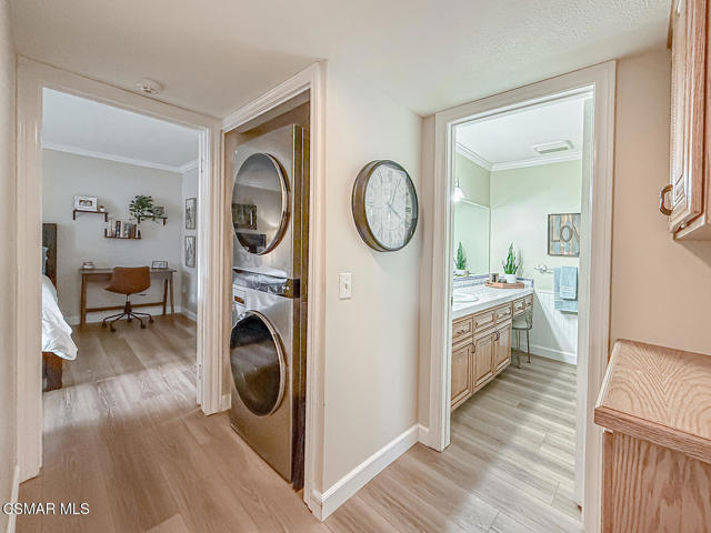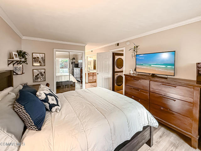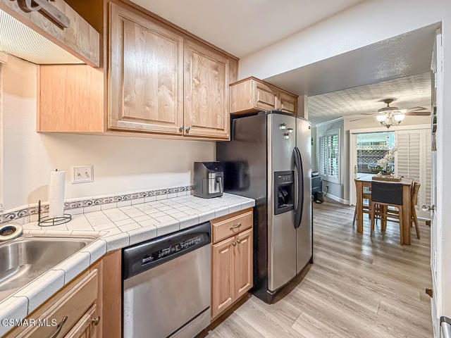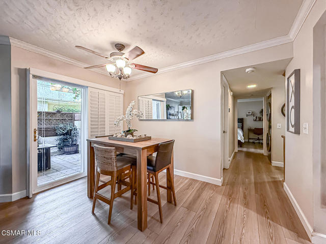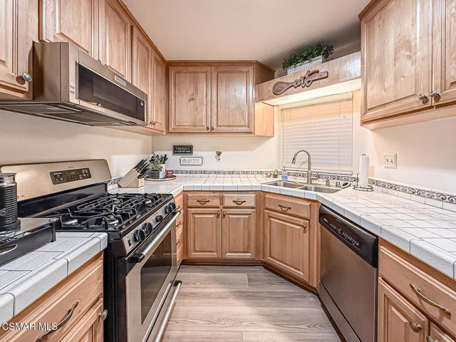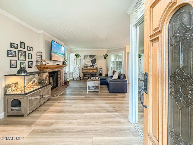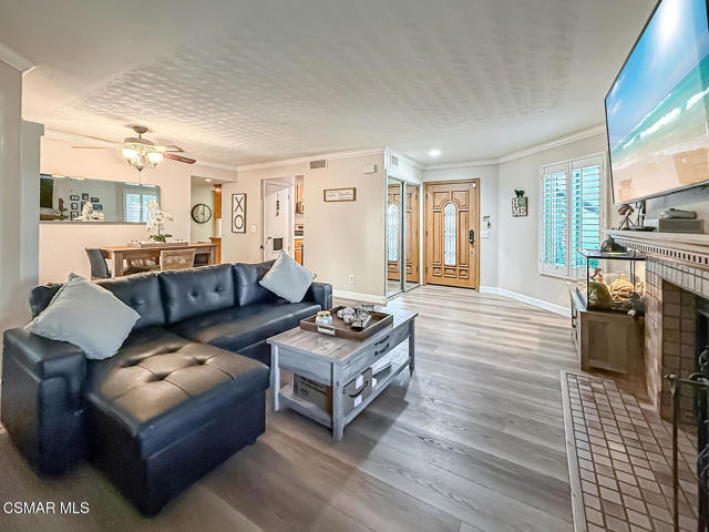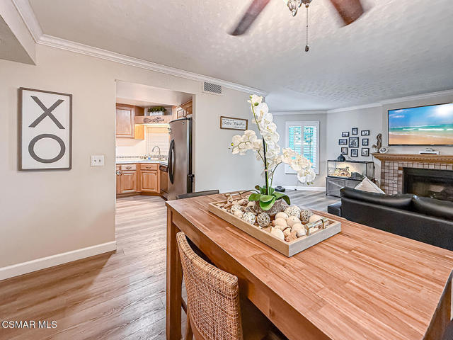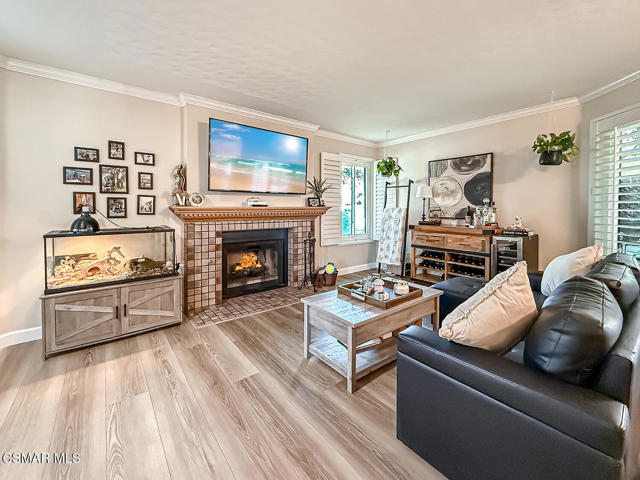 Welcome to this beautifully upgraded 2-bedroom, 2-bath lower-level condo in the desirable Sinaloa Villas community. Offering 1,074 sq. ft. of living space, this turnkey home features private patios off the living room and primary suite for indoor/outdoor enjoyment.Upgrades include wide-plank vinyl flooring throughout, dual-paned windows and sliders, smooth ceilings, crown molding, plantation shutters, and updated light fixtures. The living room boasts an oak wood-mantled fireplace, while the dining area is highlighted by a ceiling fan with lighting.The remodeled kitchen is appointed with custom cabinetry and stainless appliances: dishwasher, 4-burner gas range/oven, and microwave. A convenient indoor stackable laundry closet sits in the hallway near extra linen storage.Both bathrooms have been tastefully updated--one with a frameless glass shower and designer tile accents, the other with a shower-over-tub in the inviting primary suite.The community offers a pool, spa, clubhouse, tennis courts, ample guest parking, and HOA coverage for water, trash, and earthquake insurance. Conveniently located near shopping, dining, and schools.Hurry over!