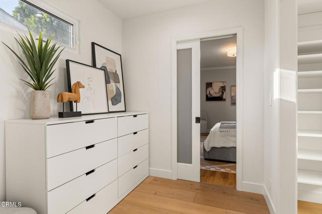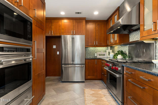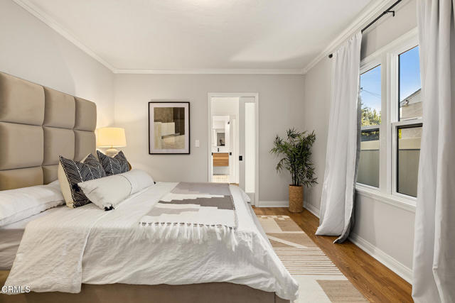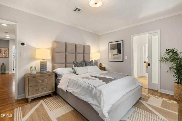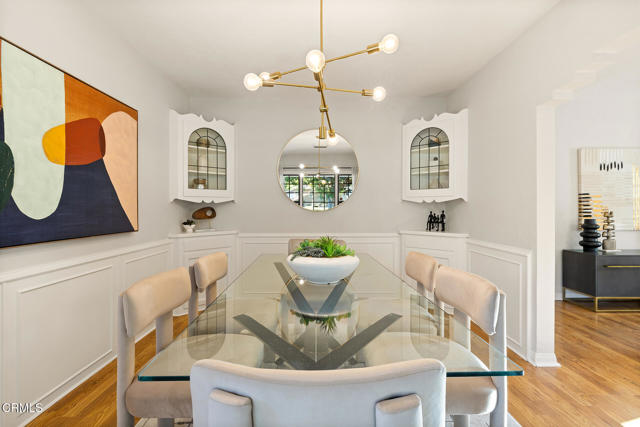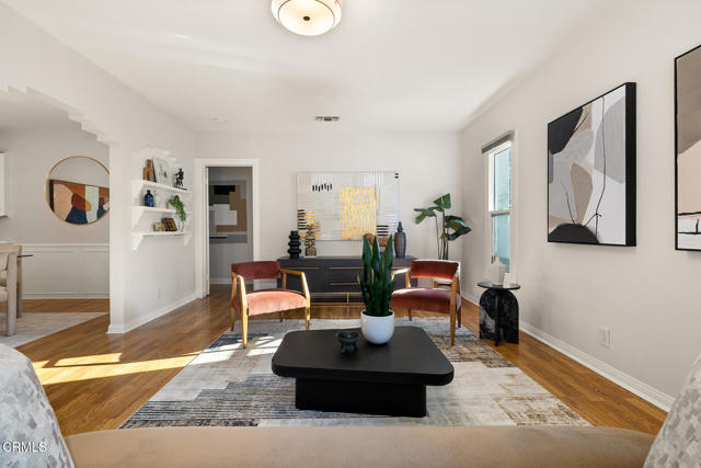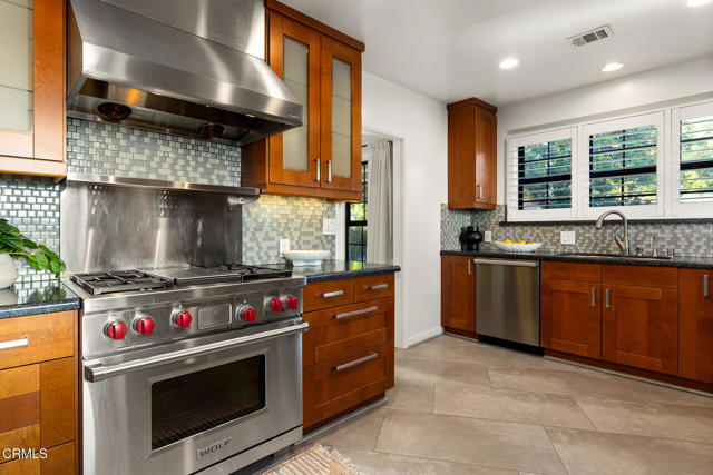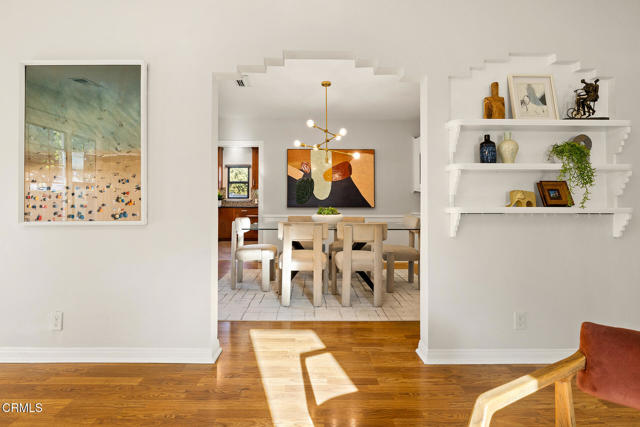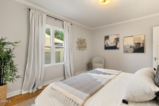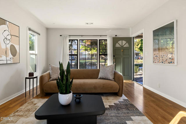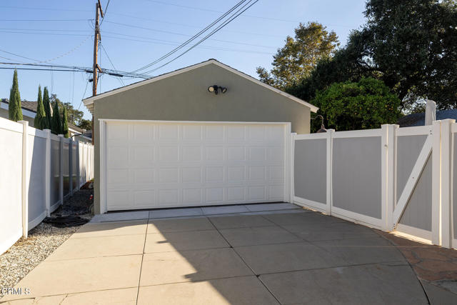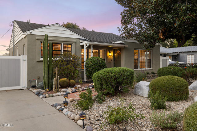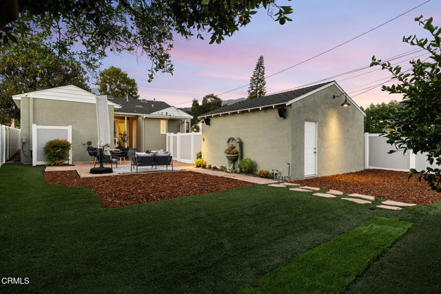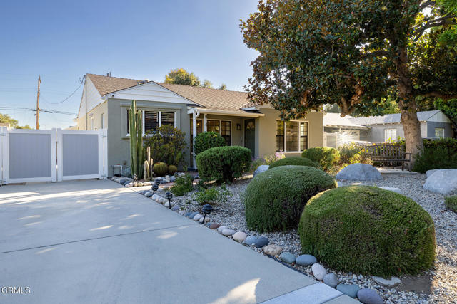 Welcome to this charming North Monrovia traditional, thoughtfully updated with luxury features throughout. A classic covered front porch leads to a spacious, light-filled living room with wood laminate flooring and an open flow to the formal dining room. There you'll find custom wainscoting accented by two built-in corner hutches. The chef's kitchen showcases stone counters, high-end stainless-steel appliances including a Wolf range, second wall oven, built-in microwave, and warming drawer, along with ample cabinetry with smart storage features, and a convenient side entrance to the gated driveway. The primary suite is a luxurious retreat, complete with a separate dressing room, walk-in closet, and spa-inspired bath. Spoil yourself with the steam shower, deep soaking tub, double-vanity sink, and designer finishes throughout. Two additional bedrooms extend the home's indoor-outdoor flow, opening to a private deck and landscaped backyard. The full hall bath features beautiful marble tile flooring, a marble topped vanity, and tiled bath with storage niche. Conveniently attached yet separate from the main house, the laundry room includes a utility sink and extra storage. At the end of the long driveway sits a fully finished garage with drywall and an epoxy floor creating a polished space ideal for a gym, hobby room, or flex space, with the potential for an ADU (buyer to verify with the City). The fully fenced backyard offers a spacious stone patio, low-maintenance artificial turf, vinyl fencing, and thoughtfully landscaped areas with continued potential for more. Additional highlights include central HVAC, updated electrical, newer insulation, and fresh interior and exterior paint. Close to shopping, restaurants, and transportation, this property captures the essence of Southern California living in the heart of Monrovia, all on a fantastic street and prime location.