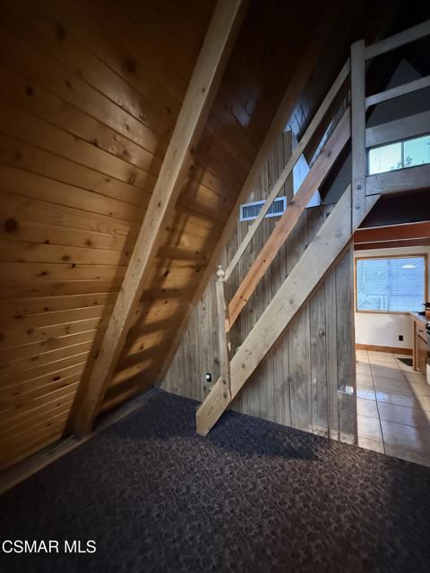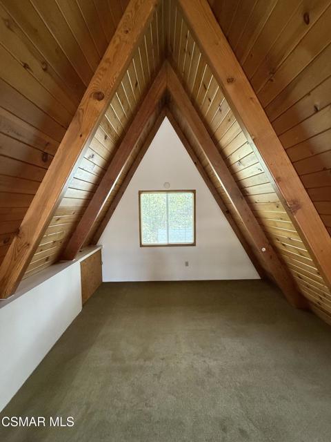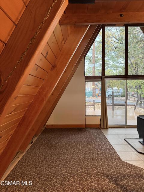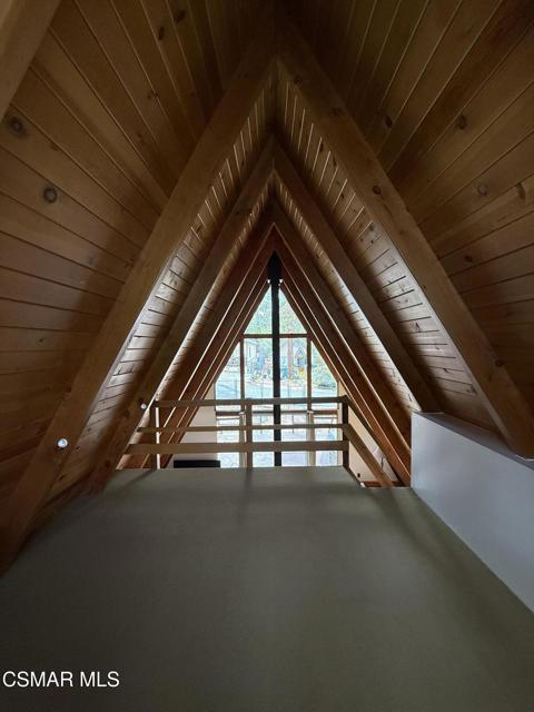Welcome to 845 Sunset Lane - a fabulous mountain retreat where unique design meets natural beauty. Nestled at the top of Sugarloaf with the forest close to your front door, this charming A-frame home offers comfort, style, and functionality in one perfect package.Situated on three lots, the property features a detached oversized 1-car garage, a fully fenced yard with two gated entrances--ideal for boat or RV parking.Inside, you'll find a freshly painted 2-bedroom, 1-bathroom home with brand-new carpet that creates a warm, inviting feel. Durable tile flooring in the entry, kitchen, and bath makes cleanup easy after snowy or rainy mountain days.The loft bedroom upstairs boasts incredible views through the home's dramatic glass-front design--making every morning feel like a getaway. Spacious enough for a queen bed or two twins, it's both versatile and cozy. The main-level bedroom features vaulted wood-beam ceilings, ample closet space, and plenty of room for multiple bunk beds or a king-sized setup.At the heart of the home is an expansive kitchen, highlighted by a massive bar-height island with seating for eight. The open living area is anchored by a wood-burning stove, perfect for cozy winter nights. Step outside to the newly upgraded Trex deck, seamlessly blending indoor and outdoor living.Additional updates include a new furnace, new hot water heater, and laundry hookups with space for a stack washer and dryer.Whether you're seeking a full-time home, weekend retreat, or investment opportunity, 845 Sunset Lane delivers the ideal mix of serenity, low-maintenance living, and proximity to all that Big Bear has to offer.