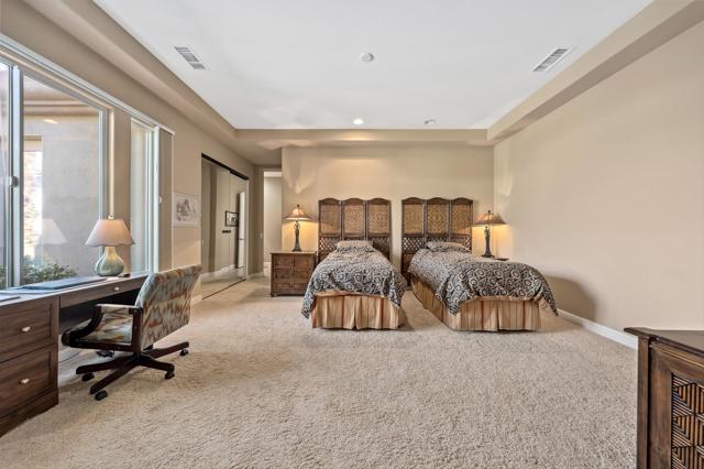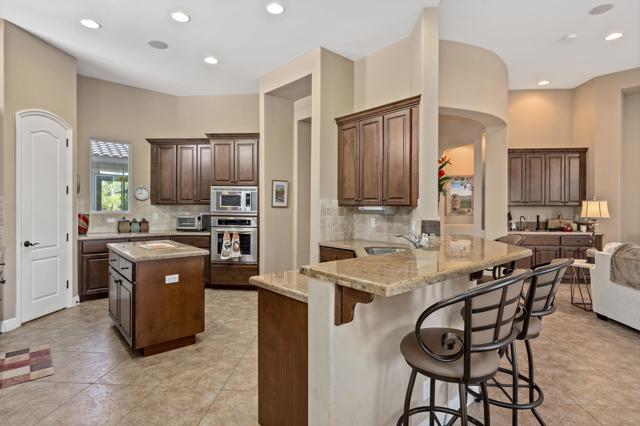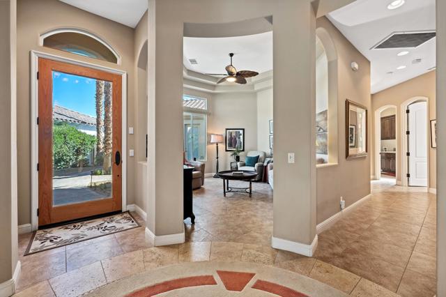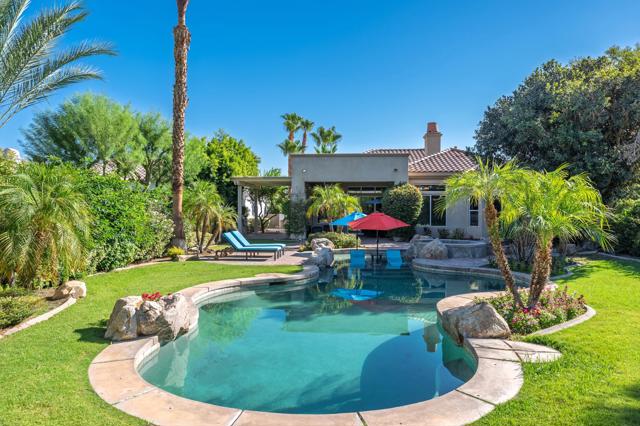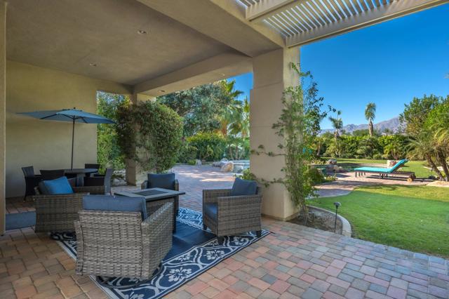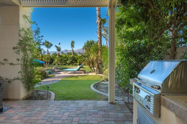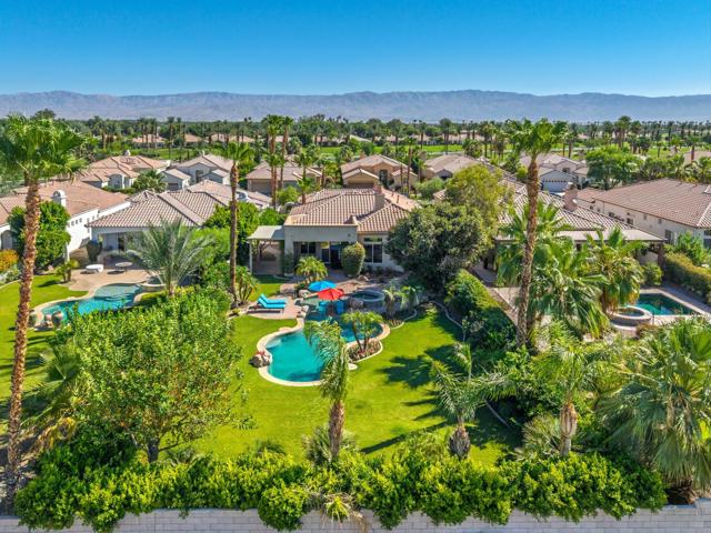 Located within the exclusive gates of Mountain View Country Club, this incredible Belize floor plan sits on one of the community's largest and most private lots, ideal for those who value space, serenity, and spectacular south-facing mountain views. Whether you're a nature lover, entertainer, or pet owner, this oversized, lushly landscaped yard is your retreat, complete with a sparkling pool and spa, creating the ultimate resort-style setting. From the moment you arrive, the custom-landscaped front yard and charming paver walkway lead you to a private courtyard and welcoming entry. Inside, the flexible floor plan offers a formal dining room that can also function as a media room or cozy den--perfectly adaptable to your lifestyle. The open-concept great room features a fireplace and flows seamlessly into a spacious kitchen with bar seating and a sunny dining area, ideal for entertaining guests or casual everyday living. The primary suite is a peaceful escape, offering direct views of the backyard oasis and surrounding mountains. It boasts a luxurious bath with dual vanities, a soaking tub, and an oversized walk-in closet. Guests will appreciate the privacy of the large guest suite with its full bath, which overlooks the quiet courtyard. The detached casita with a private entrance offers guests their retreat with breathtaking views and access to the serene backyard. Professional photos coming soon. Offered turnkey furnished for your convenience. Don't miss this chance to own one of the most desirable homes in Mountain View Country Club--offering privacy, views, and luxury in one of La Quinta's finest communities