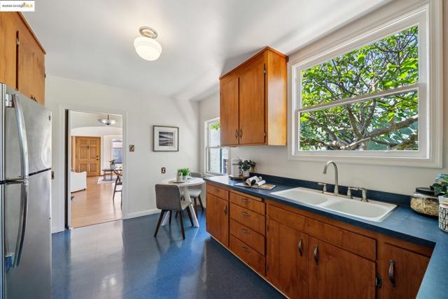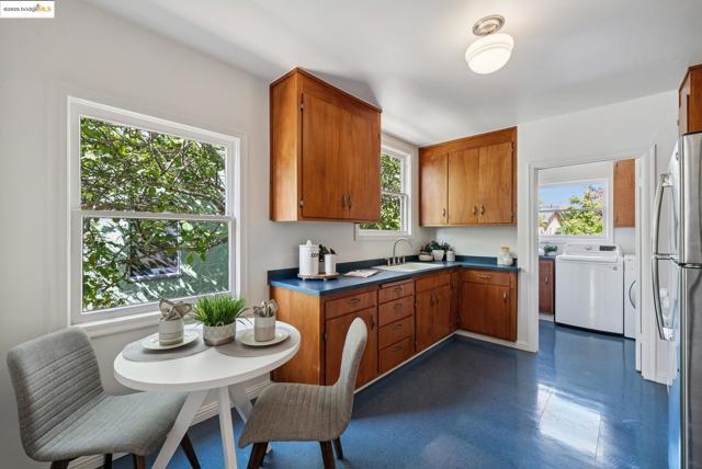 Welcome to 1431 Blake St, a charming 2Bd, 1Ba split-level home in the vibrant heart of Berkeley. This inviting home effortlessly combines classic charm with modern comfort, offering 968 Sq/Ft of thoughtfully designed living space on a generous 4,550 Sq/Ft lot, brimming with potential & endless possibilities. Step into the sun-drenched living room, where half-vaulted ceilings, elegant sconces, & rich hardwood floors create an atmosphere of warmth and sophistication. The formal dining room features timeless built-ins & wood trim, while the bright kitchen is perfect for your favorite recipes. Both bedrooms are generously sized, providing comfortable & versatile living spaces. Enjoy the added convenience of a laundry room & attached garage. The newly landscaped front yard is designed for low-maintenance living, while the peaceful backyard offers a spacious lawn & paver patio, perfect for hosting gatherings or a potential extension or ADU in the future. New roof (2025) & front landscape. BikeScore of 99, just minutes from Ashby & Downtown Berkeley BART, UC Berkeley, & the Bay Bridge. Quick access to I-580, I-80, and I-880 makes commuting easy. Surrounded by vibrant culture, a global food scene & a thriving arts community, this prime location offers seamless Bay Area living.