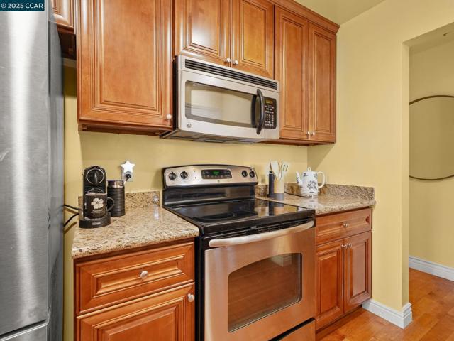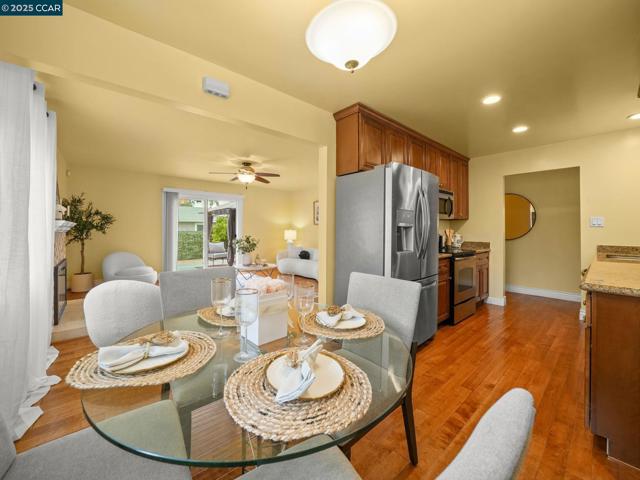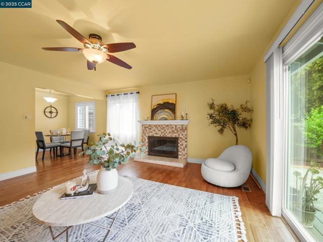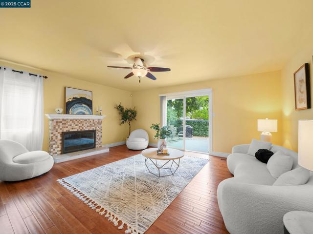 Charming and move-in ready 3-bedroom, 2-bath ranch-style home in a great Concord location! Step inside to a bright, inviting living room featuring polished hardwood floors, a cozy wood-burning fireplace, and sliding glass doors leading to a peaceful backyard retreat. The updated kitchen showcases rich wood cabinetry, granite counters, and stainless steel appliances, opening to a casual dining space that connects seamlessly with the main living area.The bedrooms are spacious and comfortable, and both bathrooms have been tastefully refreshed.Enjoy the large gated front yard with beautiful landscaping and a private backyard filled with fruit trees — perfect for relaxing or entertaining outdoors.