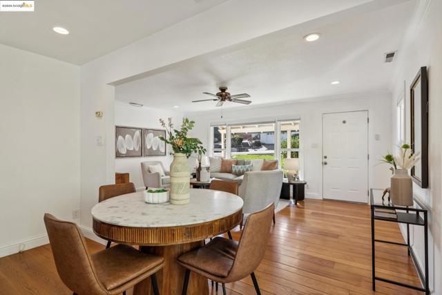 Nestled in the Castro Valley hills, this single-level mid-century home blends classic charm with the kind of livability today’s buyers are after. Natural light pours through large windows, brightening the open living and dining spaces and setting an easy, welcoming tone. A graceful archway marks the transition to a private wing, where three comfortable bedrooms and a full bath offer quiet retreat. The spacious patio and covered gazebo set the scene for sunset dinners and spontaneous get-togethers, while a detached bonus structure opens the door to whatever you need most: studio, office, garage, or all of the above. A long side driveway adds generous off-street parking and access. The condition has been upgraded throughout including dual pane windows, extensive insulation, newer heat and AC and an on demand water heater. Bright, grounded, and full of possibility, this Castro Valley home invites you to live your next chapter, your way.