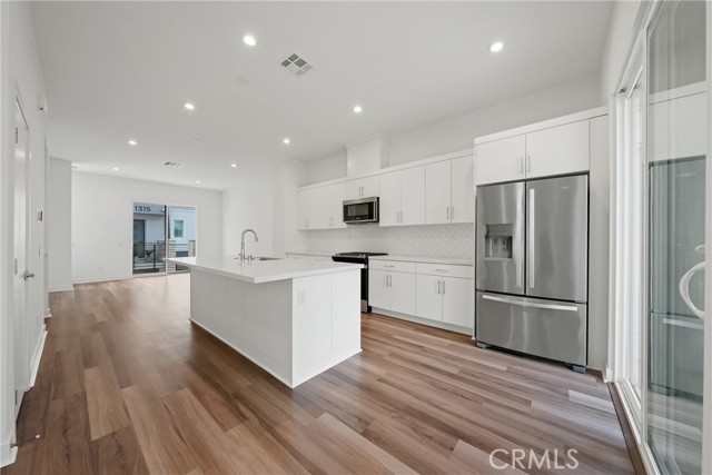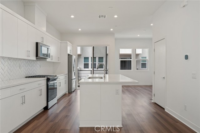 Welcome to this stunning contemporary residence, masterfully crafted by Toll Brothers and nestled within Anaheim’s highly coveted gated community of 100 West. Here, modern sophistication blends seamlessly with resort-style living, offering residents access to a sparkling pool, soothing waterfall spa, lush landscaped greenbelts, a dedicated dog park, BBQ stations, and the security of a gated entrance. The home itself features 4 bedrooms and 3.5 bathrooms, including a convenient first-floor suite ideal for guests, extended family, or a live-in nanny. The second floor embraces an open-concept design with a chef’s kitchen at its heart, highlighted by a grand center island, stainless steel appliances, abundant cabinetry, a large pantry, and ample counter space, all flowing gracefully into a bright, sun-filled living area. The third floor is devoted to the serene primary suite, complete with a spacious walk-in closet and spa-inspired bath with dual mirrored vanities, a glass-enclosed shower, and a rainfall showerhead. The fourth-floor rooftop deck provides a private open-air retreat, perfect for entertaining under the stars or enjoying quiet morning reflections. Fresh interior paint and new carpeting elevate the home’s turnkey appeal, while its prime location just minutes from Disneyland, the Honda Center, Angel Stadium, world-class shopping, dining, top medical centers, and major transportation hubs ensures unmatched convenience. More than a home, this residence is a refined sanctuary where every detail invites comfort, elegance, and a life well lived.