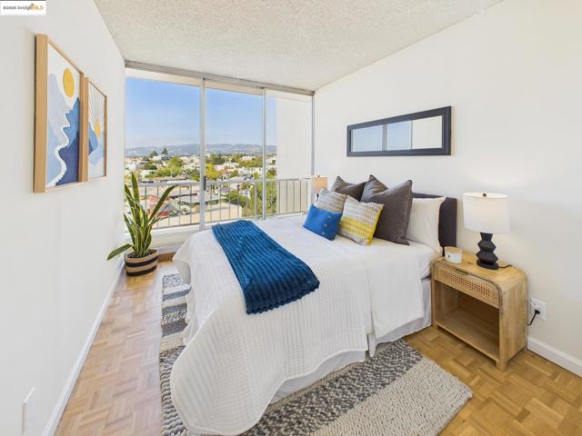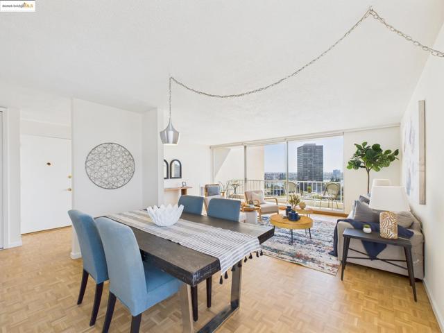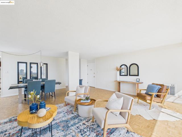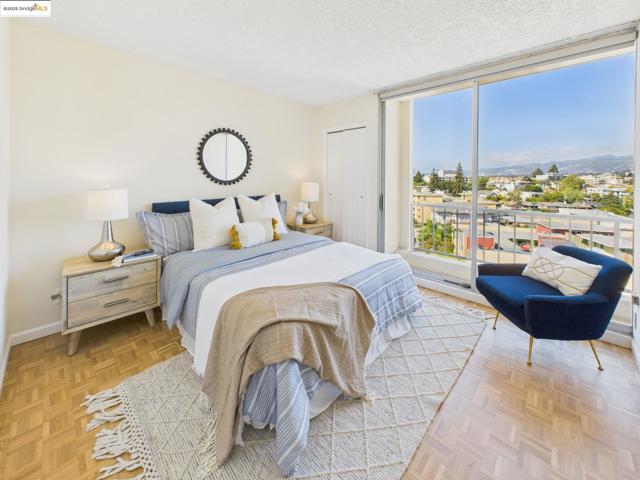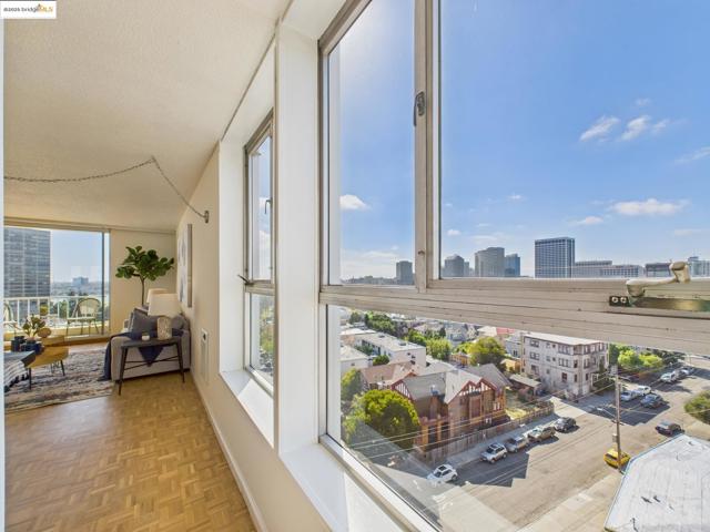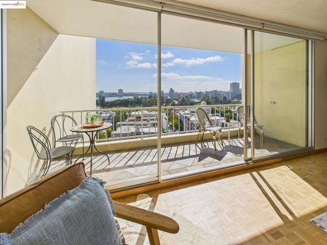 Opportunity knocks in the sky! This beautiful 10th floor condo at Van Buren Tower puts you right in the heart of Adams Point with grand views in every direction—Lake Merritt, Downtown Oakland, the hills, the Bay, and beyond. With floor-to-ceiling windows and a bright corner location, natural light pours in all day long. Step outside onto your spacious balcony and take in the sunsets, city lights, or just a quiet moment above it all. Inside, you’ll find 1,000 sq. ft. of thoughtfully designed space. The refinished white oak parquet floors add warmth and character, while the updated kitchen with high-end appliances and updated baths make it easy to move right in. The primary suite comes with its own private full bath, and the second bedroom and hall bath are perfect for guests, a home office, or both. Living at Van Buren Tower comes with all the right extras: gated garage parking, secure elevators, app-based laundry, extra locked storage, EV charging, bike storage, outdoor terraces, and a pet-friendly vibe. And when it’s time to head out, you’ll love being just blocks from Whole Foods, Trader Joe’s, and some of Oakland’s best restaurants, cafés, and nightlife. Lake Merritt is right down the street and getting to BART and around the Bay is breeze. Open: 10/4 & 10/5 2:00 - 4:30! Views: Downtown