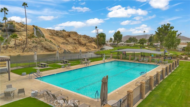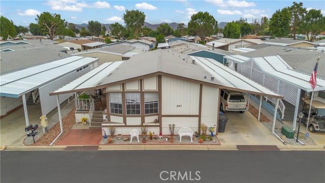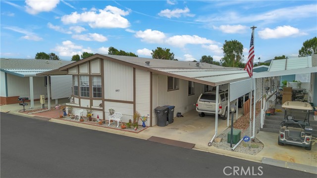 Welcome to 5001 W. Florida Ave #697 — a spacious and well-maintained 2-bedroom, 2-bathroom manufactured home located in The Lakes at Hemet West, one of Hemet’s most sought-after 55+ gated communities. With 1,440 sq ft of thoughtfully designed living space, this inviting home offers the perfect blend of comfort, convenience, and access to resort-style amenities right outside your door. Inside, you’ll find a bright and open floor plan, generous room sizes, and a seamless flow between the living, dining, and kitchen areas — ideal for both entertaining and everyday living. The primary suite features a private bath, and there’s a dedicated laundry area for added convenience. A private patio space and covered parking round out the home’s practical appeal. Step outside and experience the vibrant lifestyle that makes The Lakes at Hemet West truly special. This gated, active adult community is surrounded by lush landscaping, peaceful lakes, and tree-lined walking trails — and offers a wide array of amenities including: 9-hole executive golf course Heated, year-round pool with cascading waterfalls Jacuzzi spa Catch-and-release fishing lakes and even a turtle habitat RV storage options Dog park and pet-friendly walking paths Horsehoe pits, pickleball, bocce ball, and shuffleboard courts Outdoor grill & BBQ area At the heart of the community is a vibrant clubhouse with something for everyone — including a library, billiards room, game room, card tables, ceramics room, small gym, full-service kitchen, event space, and laundry facilities. From Taco Tuesdays to craft fairs, dances, luncheons, and even an annual kids’ fishing derby, the social calendar here is as active as you want it to be. Whether you're looking for peaceful surroundings or a lively, amenity-rich lifestyle, this move-in-ready home offers it all. Schedule your private showing today and discover why The Lakes at Hemet West is one of the region’s premier destinations for active senior living.