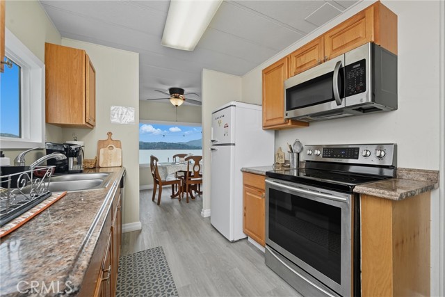 Welcome to your dream retreat on the shores of the best bass fishing lake in the western United States! This meticulously maintained 2-bedroom, 2-bath manufactured home offers a perfect blend of comfort and outdoor adventure. Step inside to discover a bright and airy living space, featuring a spacious open floor plan that seamlessly connects the living room, dining area, and modern kitchen—ideal for entertaining friends and family. The generous master suite boasts an en-suite bath for your convenience, while the second bedroom offers plenty of space for guests or a home office. Enjoy morning coffee or evening sunsets on your private backyard, where stunning lake views create a tranquil backdrop for relaxation. Lot size square footage is combined with property across the street. With direct access to exceptional fishing opportunities right at your doorstep, this property is a haven for anglers and nature lovers alike. Don't miss your chance to own a piece of paradise—this home is not just a place to live, but a lifestyle waiting for you to embrace!