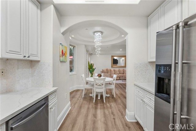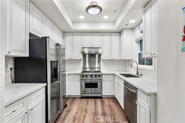 Experience the essence of refined coastal living in this fully remodeled 2-bedroom, 3-bath townhome with a bonus loft and home office. In a private gated community in the heart of Santa Monica, with no neighbors above or below and direct garage access, this home offers both comfort and privacy. Inside, new flooring runs throughout bright, open spaces. The kitchen has been fully upgraded with marble quartz countertops, custom cabinetry, a farmhouse sink, and high-end appliances, including a Viking stove. French doors open to a private patio, perfect for relaxing or entertaining. Upstairs, both bedrooms are en-suite retreats. The primary suite features a walk-in closet, private balcony, and a spa-like bathroom with a jacuzzi tub. A versatile loft adds extra space for an office or lounge. The complex includes a quiet private courtyard, while the home offers peace of mind with a brand-new HVAC system and water heater. HOA benefits include 24-hour security, earthquake insurance, trash service, and beautifully maintained grounds. With nearly 1,700 sq. ft. of living space and multiple outdoor areas, this home is a rare find—combining style, privacy, and convenience just minutes from beaches, shopping, and dining.