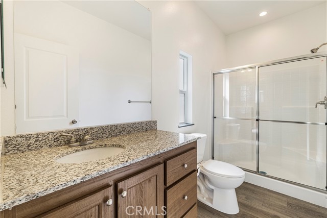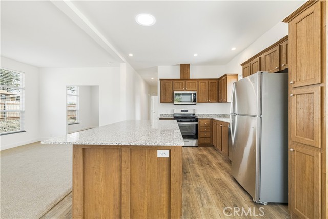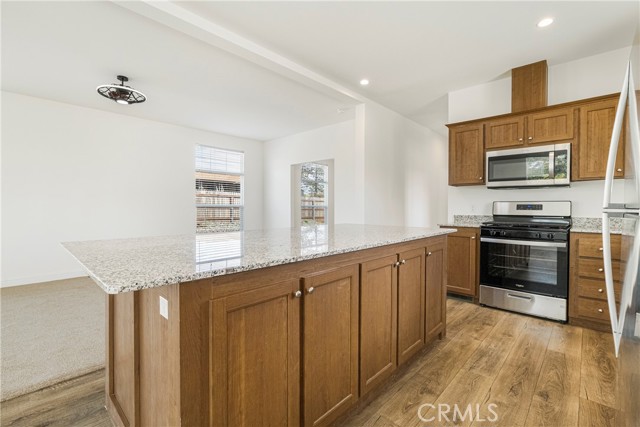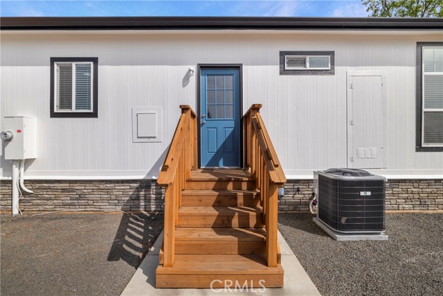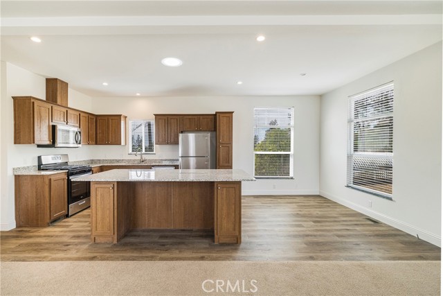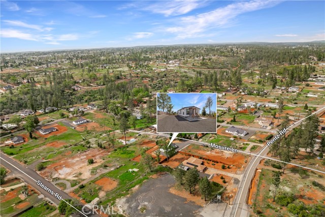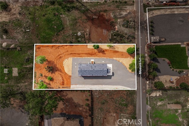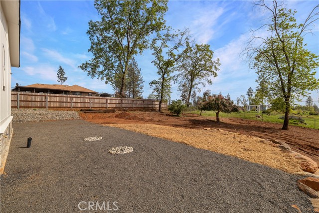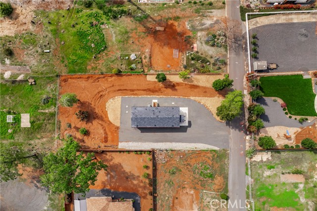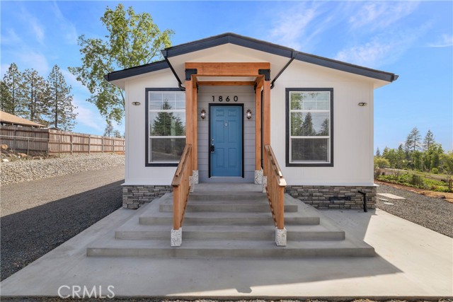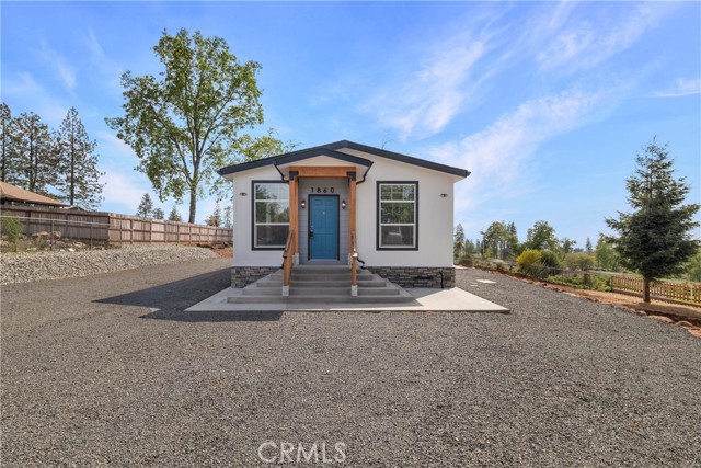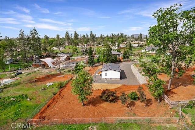 This New Manufactured Home on .5-acre lot is ready for a new owner. The builder poured a concrete slab before setting the home, wonderful upgrade. The concrete slab extends to the front covered concrete porch measuring 11'X24'. New septic tank and leach field! R.V. / Boat / Trailer parking measures 22'X80'. Plenty of room for a garage / shop. The skirting is solid ledger stone! The home offers 9ft. ceilings throughout and oversized windows with blinds. The open floor plan kitchen and living room offer 5" baseboards, 4X8 island, granite countertops, Whirlpool Appliances, Solar tube, Recessed Lighting, upgraded ceiling fan/light and lots of cabinets. Off the living room is a den/office or just extra living space. The primary bath offers granite counters and step in shower. The guest bath offers granite counters and a tub/shower combination. The exterior siding is cement board. The builder also put in a gutter system with drainage pipe that keeps water away from the home. Nice mature trees: 3 Oak Trees, 2 Redwood Trees and a variety of smaller trees. This would make a great home for a new Paradise resident.