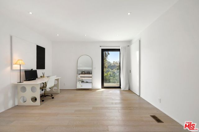 Welcome to this beautifully renovated Hollywood Hills West refuge positioned on a non-through street with sweeping views of the canyon, trees, and hills. Enter through a secured gate to the home's private front patio, the perfect place to enjoy a morning beverage, barbecue, or converse with guests. Inside, discover a fully updated kitchen with custom cabinetry, top-of-the-line appliances, and center waterfall island. Wood floors flow into the living room, complete with large panes of sliding glass that open to the main-level balcony and its spectacular vistas. Nearby, the dining room also promises serene views through a large picture window. On the lower level, the owner's wing includes a makeup nook, sitting area, and direct access to an expansive viewing deck with numerous sitting and lounging areas. The spa-inspired bath features a floating dual-sink vanity, soaking tub, large picture window, and oversized rainwater shower. Custom built-ins in the walk-in closet maximize use of space. There is also a bonus room that can be used as an office, gym, yoga studio, media room, writer's haven, and more. Outside, a nature pathway leads to the terraced gardens below, ideal for peaceful meditation and thoughtful solitude. For added convenience, there is a massive amount of storage space in both the attic and basement, with each measuring roughly 900 square feet in size! Enjoy this central location tucked away from the city yet just moments to Laurel Canyon's cult favorite Pace restaurant, Sunset Boulevard, the Westside, Mulholland Drive, and the Valley. Top-rated Wonderland Avenue Elementary School and Mulholland Tennis Club are also close by.