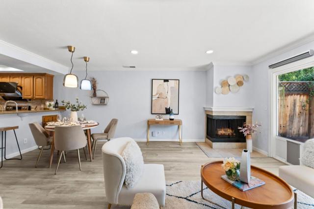 Welcome to this beautifully upgraded 2-bedroom, 1.5-bath townhouse in vibrant Campbell. A rare PUD with a spacious south-facing backyard, this home offers 1,152 sq. ft. of comfortable living space and lives like a single-family home. The kitchen is updated with sleek stainless steel appliances, making cooking a delight, while the open-concept dining and living areas create a warm, inviting atmosphereperfect for entertaining. Enjoy cozy evenings by the fireplace, surrounded by tasteful two-tone paint and accent walls. Both bathrooms have been thoughtfully updated, and the mix of laminate and tile flooring throughout offers style, durability, and low maintenance. Smart-home upgrades include automated curtains, thermostat, and lighting. A washer and dryer are also included for your convenience. Practicality meets comfort with forced-air heating, a 1-car attached garage plus an additional assigned parking space. Tucked quietly off the street, this home provides a private retreat while still being close to Campbells lively shops, dining, and commuter routes.