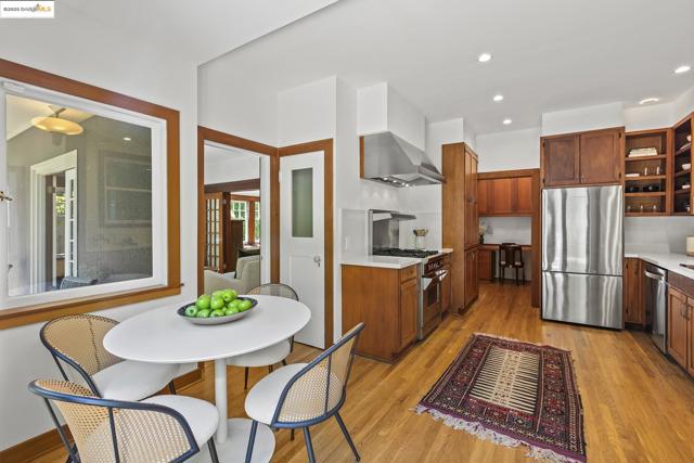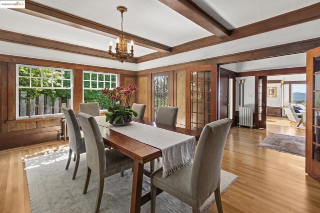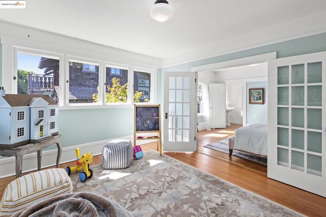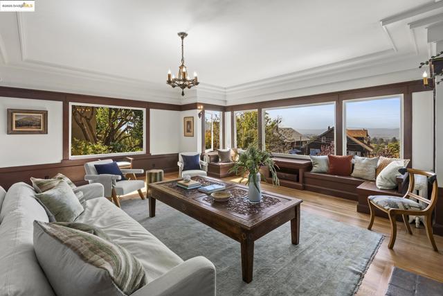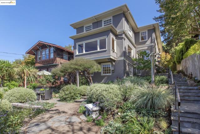 Elegant and expansive, this grand 1913 Craftsman by Louis Engler embodies the best of Berkeley’s architectural heritage. With 3,925 SF, eight bedrooms, and four baths, it offers timeless details, generous proportions, and a prime location in North Berkeley’s Gourmet District. Professionally landscaped gardens with fig, persimmon, and lemon trees surround the home, while French doors open from the kitchen and sitting room to a private backyard with a storybook garden shed. Inside, highlights include a majestic Bay-view living room with fireplace, updated kitchen with butler’s pantry and writing nook, and a lower-level studio with private entrance, kitchen, and bath—ideal for guests or extended family. Oak and Douglas fir floors, radiant heat with newer boiler, playful bathrooms and light-filled bedrooms add character and comfort. The primary suite, overlooks the Bay, while rear bedrooms face the lush garden. Cherished by one family for decades, 1305 Arch blends historic elegance with modern updates, just moments from Chez Panisse, Walnut Square, the Cheese Board, Solano Avenue shops, transportation hubs and more.