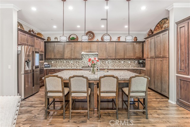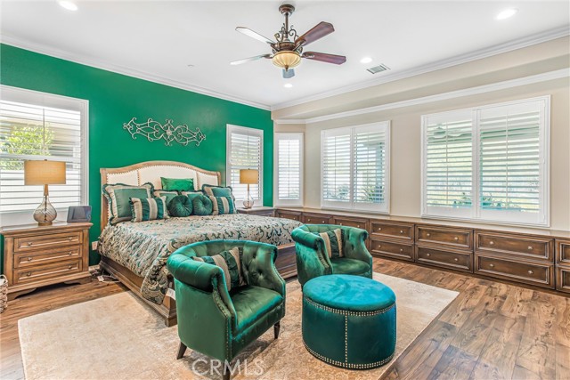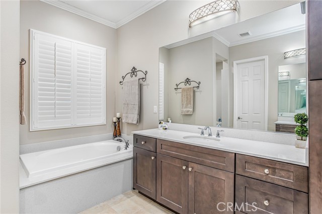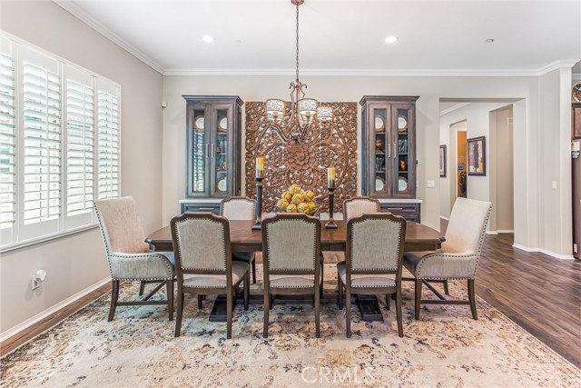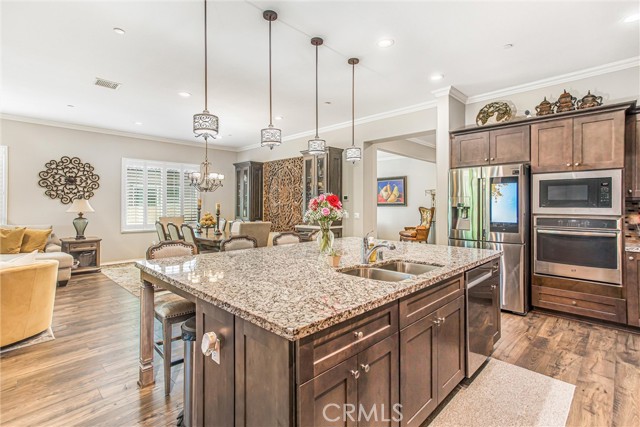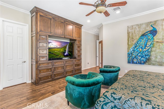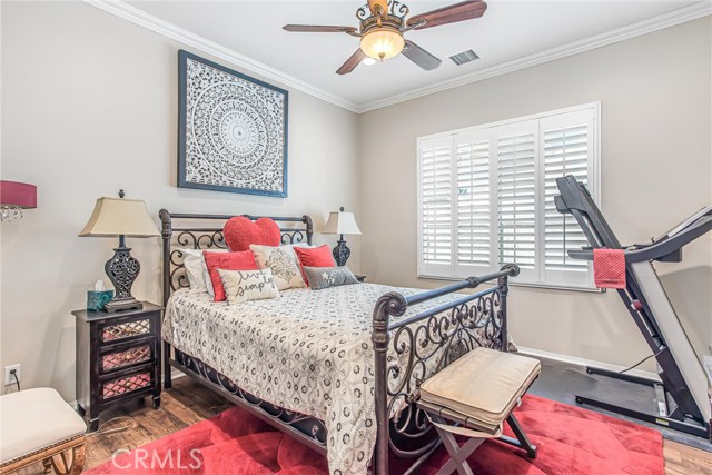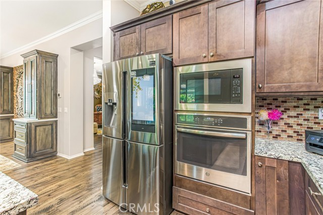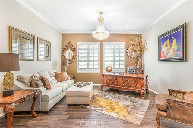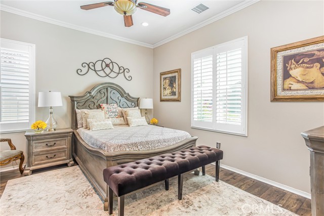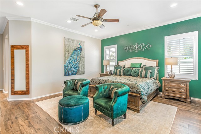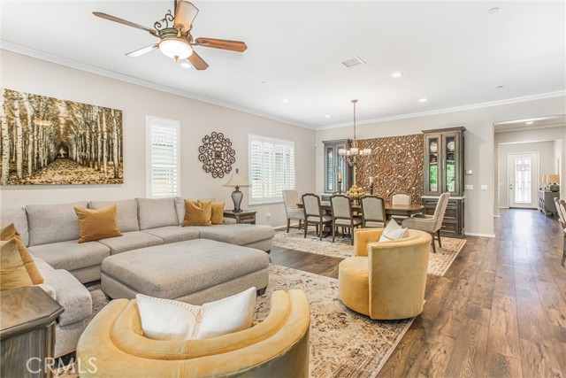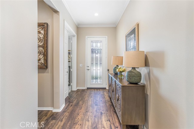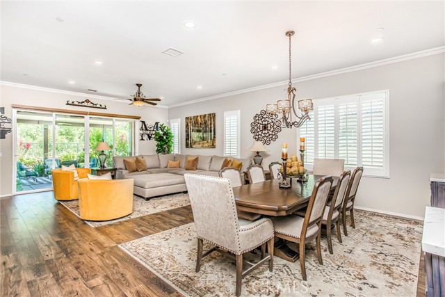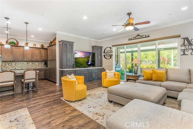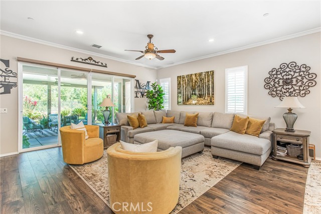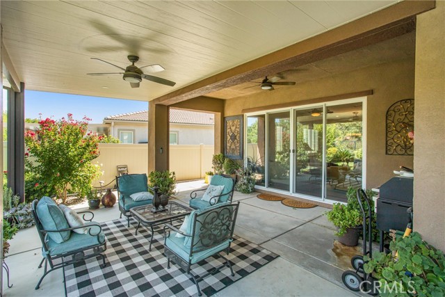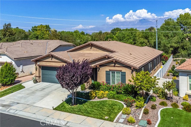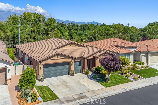 My oh my oh my, what a beauty you are!! Welcome to 1608 Sams Canyon, your oasis and calming space in an ever increasingly chaotic world. Located in the resort style 55+ community of Four Seasons in Beaumont, this stunning home has been beautifully upgraded from top to bottom, and you'll be sure to appreciate every detail. Spread out over 2700 sqft, it features 3 bedrooms, 3 full baths, vinyl flooring throughout, elegant crown molding and shutters in every room. The gorgeous kitchen overlooks a spacious great room/dining room with a custom built in entertainment center. Step through the double wide slider doors to a beautifully landscaped backyard with extended alumawood patio cover that spans the entire width of the home. With no neighbors in the back, enjoy the sounds of nature, wooded views and privacy it allows. Back inside, the secondary bedrooms are generously sized and very welcoming. The primary also features custom built-ins that provide ample storage. Some notable features of the community that you can enjoy are multiple club houses, an indoor heated as well as outdoor pools, a bistro, theater, pickleball, tennis, ping-pong, bocce ball, basketball, gyms, hair salon, and so much more. With miles of wooded walking trails and sidewalks, and an assortment of social clubs and activities, you are sure to find something that suits you to become a part of. And oh, did I mention that a 38k mile Bentley is included?????? Call today!