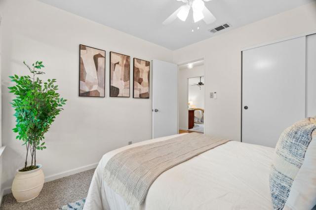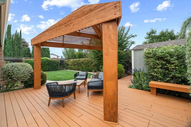 Picturesque single-story 3Bed home w/ undeniable curb appeal, tucked in Santa Teresa near the Foothills. Enjoy a front yard designed for California living w/ drought-tolerant, low maintenance landscaping. Step inside to a spacious Living Rm w/ vaulted ceilings, engineered hardwd flrs, plantation shutters & cozy wood-burning fireplace. Updated Kitchen offers recessed lighting, sizeable dining area & easy flow for everyday meals or entertaining. Three generously sized bedrooms, including a large primary suite. Guest Bed has built-in desk & custom closet organizer. Added comforts: dual-pane windows, ceiling fans, Nest thermostat, auto-controlled blinds, fresh int/ext paint, A/C + 2Car garage w/ opener & a comp roof. Enjoy year-round outdoor living in the manicured backyard w/ a covered pergola, cozy patio & lush green lawn perfect for play, pets or a touch of relaxation. Big storage shed makes life easy. Best of convenience & recreation - walk to parks/trails, close to shopping & dining. Near Village Oaks, Costco, Kaiser, Safeway, ST Golf & Oakridge Mall. EZ access to 85, 101 & 87 freeways. Top Schools - Santa Teresa Elem, Bernal Mid, Santa Teresa High. An excellent opportunity for first-time buyers, move-up buyers or downsizers. Exceptional value. HOME'S LIKE THIS DON'T LAST LONG!
