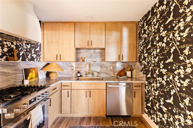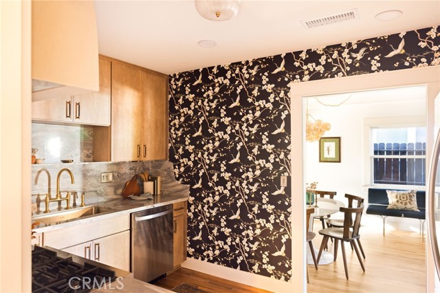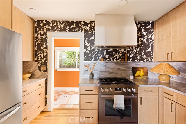 Sometimes the moment you enter a home it feels so special that you can just tell whoever created it had joy in their hearts... Welcome to 215 Branch Street, the latest restoration by local designers Moxie Houses. Circa 1912, this romantic and whimsical 2-bedroom, 2-bath Craftsman sanctuary (PLUS detached creative space) has had every detail infused with intention, love and thoughtfulness. Each carefully revived detail pays thoughtful tribute to the era in which the home was built while exuding warmth, soul and timeless charm in every direction. From the little wooden library on the sidewalk outside with a fig tree not far behind, to the custom installed porch swing where you can sip lemonade in the shade on hot days, your heart will be swept away with every curated space from the moment you arrive home. The features and upgrades are too many to list but include restored wood windows, refinished original red oak flooring, vintage-inspired lighting with push-button switches, custom wallpaper accents, high-end fixtures, a Bosch range and updated systems throughout. The living room features a Batchelder fireplace with restored tile work. The kitchen is epic with beautiful details like a bespoke Roman Clay range hood and custom cabinetry, quartzite countertops with extended backsplash ledge for all your cooking essentials and storage galore. The primary suite is both dreamy and calming. It feels like your own private refuge with a breathtaking ensuite bath and casement windows that overlook lush green trees and outdoor space beyond. Just off the kitchen, the spacious laundry room leads you to a magical backyard oasis completely privatized with hedging and adorned with a generously fruiting persimmon tree. Not to mention a light-filled, detached creative space that has a total poetic, “tree house” vibe and serves as the perfect retreat for whatever your craft is! All of this in an absolutely ideal location. You are literally less than a block away from the adorable and beloved cafes, boutiques and eateries on York Blvd yet the street feels quaint and residential. With its timeless architecture, endless upgrades and phenomenal location, this darling home is as classic as it is enchanting—a true Highland Park gem.