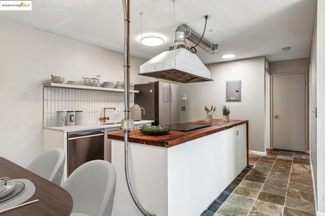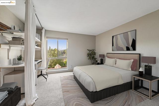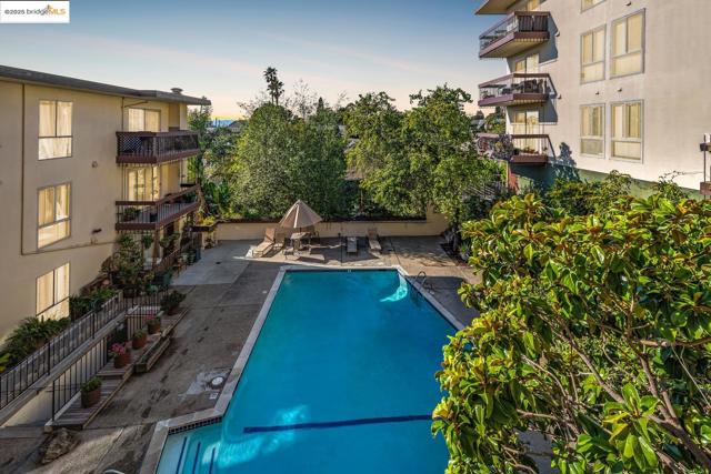 This sweet 1 bedroom/1 bath condo in the Grand Lake neighborhood has unique architectural details that make it feel more like a loft with urban vibes. The unit is west facing, awarding it the opportunity for amazing peeks at the sunset view from both the living room and bedroom. The living room balcony overlooking the pool complex creates the perfect place to sit and unwind. Open dining area with modern lighting and walls perfect for open shelving. The kitchen has a butcher block countertop, coupled with an additional quartz counter with beautiful tiled backsplash. Stainless steel refrigerator and dishwasher; an induction stove and tile flooring. The bedroom has built-in closet shelving creating additional storage, and a large window that creates lots of natural light. Charming bathroom with shower updates. One dedicated parking stall in a gated garage, plus storage locker, with easy access from the lobby. Laundry facilities and an additional dedicated storage space are provided on the unit floor. The complex has a heated pool, seating areas and a sauna. Walkable to dining, entertainment and shopping. *Furnishings shown are computer-generated images using photos of the home created by an outside source. These images may not accurately depict the true scale of the space.