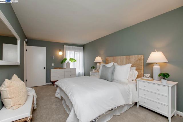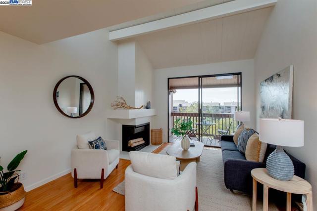 Located directly across the street from Alameda's beach and shoreline, this newly updated waterfront condo is part of The Willows HOA community and features 2 bedrooms, 1.5 bathrooms and a living room/dining room/kitchen great room. Features of this sunny 4th-floor home include a durable wood-style laminate floor on the main upper level, and new carpeting in the lower level bedrooms. Updates include new light fixtures, new quartz kitchen counters + a new stainless steel range + dishwasher, fresh interior paint + updated/refreshed bathrooms. Details include a dramatic vaulted great room ceiling, a fireplace + a balcony off the great room with partial water views. In-unit washer/dryer hookups. One covered parking space is assigned to the unit. Owners can take advantage of the HOA's many amenities such as an attractive clubhouse, a large pool + an in-ground spa, and a fitness center. The convenience of the home's close proximity to Trader Joe's and the South Shore Center's many attractions can't be overstated, while Washington Park and downtown Park St are just a few minutes away. With the sights and sounds of the SF Bay at your doorstep, this home truly feels like resort-style living at its best!
