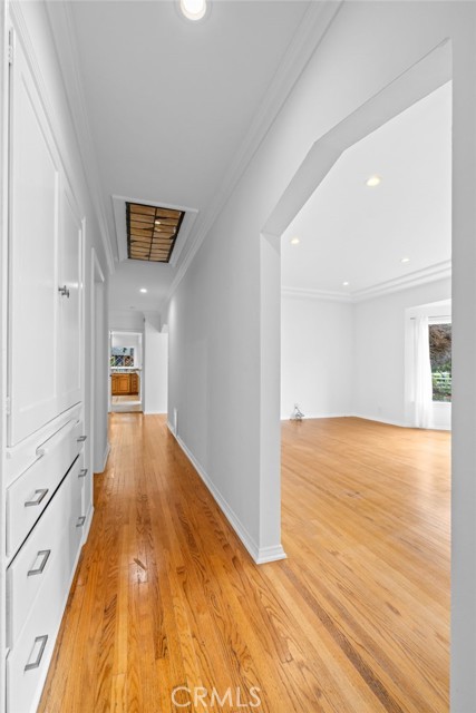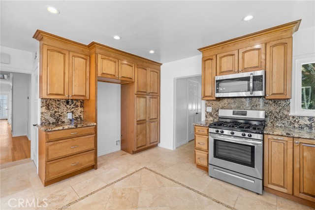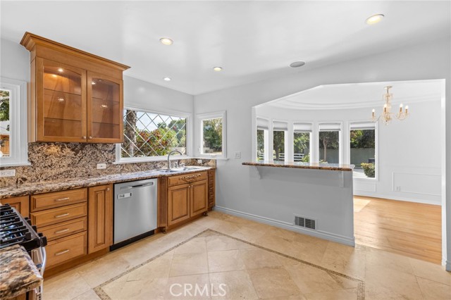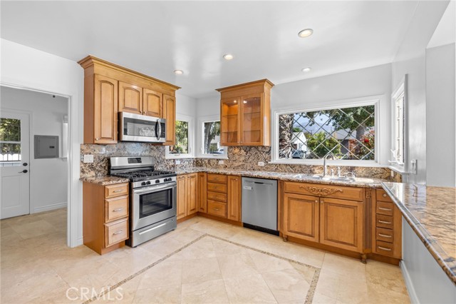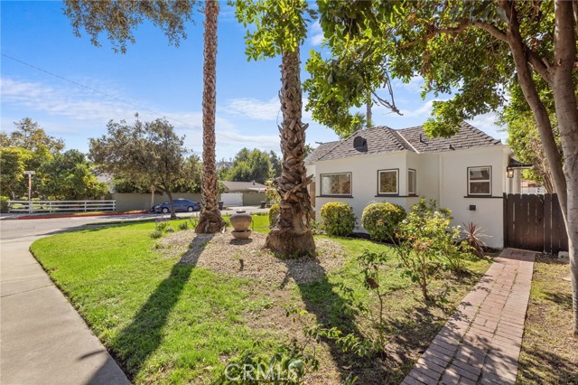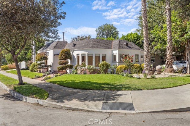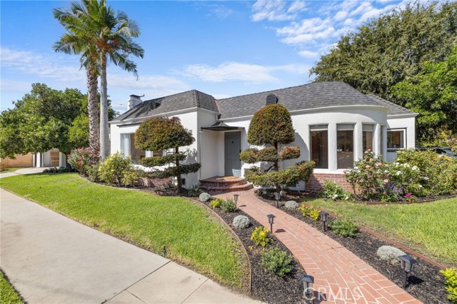 Set in the highly desired Glendale Rancho neighborhood, this beautifully updated French Normandy-style single-family home offers 3 bedrooms and 2 bathrooms. Every detail has been thoughtfully considered, with fresh paint inside and out showcasing the home's character and charm. Step through the formal entry and into an expansive living room, featuring a large bay window, soaring custom ceilings, built-in bookcases, a fireplace, and modern LED lighting throughout. The elegant dining room boasts sweeping curved windows with views of the professionally landscaped front yard, creating a perfect space for entertaining. The open-concept layout flows seamlessly into a stylish kitchen equipped with maple wood cabinetry, granite countertops, a breakfast bar, and brand-new stainless steel appliances. Adjacent to the kitchen is a laundry room with a convenient rear access door. Down the main hallway are three spacious bedrooms. Two are en-suite with direct access to bathrooms, while the third bedroom—ideal as a guest room or home office—features wood paneling and a dedicated door for added privacy. The third bedroom opens directly to the private backyard. Outside, the freshly landscaped yard creates a peaceful retreat, perfect for relaxing or hosting friends. The detached two-car garage, finished with drywall and polished concrete floors, offers a versatile space that’s ideal for a home office, studio, or creative getaway.