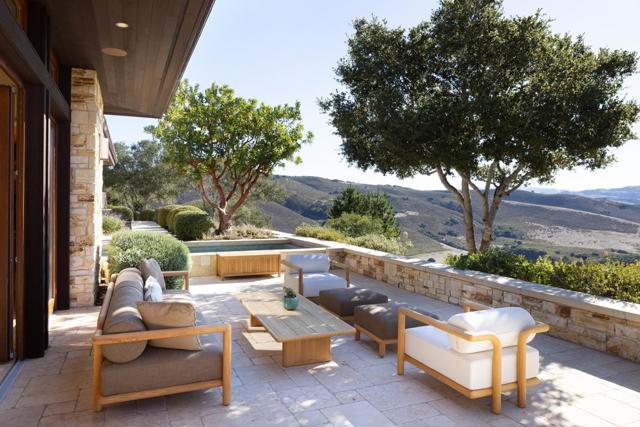 Set amongst the rolling hillsides of Clint Eastwood's world-renowned Tehama Golf Club, this exceptional 6,949 SqFt estate offers 5 bedrooms, 5.5 baths and premium craftsmanship throughout. Built in 2007, the home features San Ardo stone exterior, Jerusalem limestone floors, and rich wood accents. The chef's kitchen boasts custom Eggersmann cabinetry from Germany, while Italian Rimadesio closets and Konnen GlasHaus windows highlight bespoke design. Expansive living areas include 4 interior fireplaces, a media room with 4K projection, and seamless indoor and outdoor flow to terraces, fire pits, and 2 pools - a lap pool and cold plunge, plus a spa. Modern living includes enterprise-grade 1 gigabit internet and internet-enabled whole-house automation, including a Lutron lighting system, Yamaha MusicCast audio, and Honeywell security with Nest cameras. Energy efficiency shines with a full solar array, 3 Tesla Powerwalls, and advanced water systems. With a detached 3-car garage, radiant heating, guest house renovations, outdoor entertaining spaces, and a plumbed Ooni pizza oven, this property blends elegance, technology, and comfort in one extraordinary residence. Just minutes to world-class beaches, shopping, and restaurants, this is an incredible opportunity for Carmel luxury living.