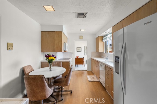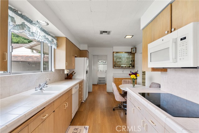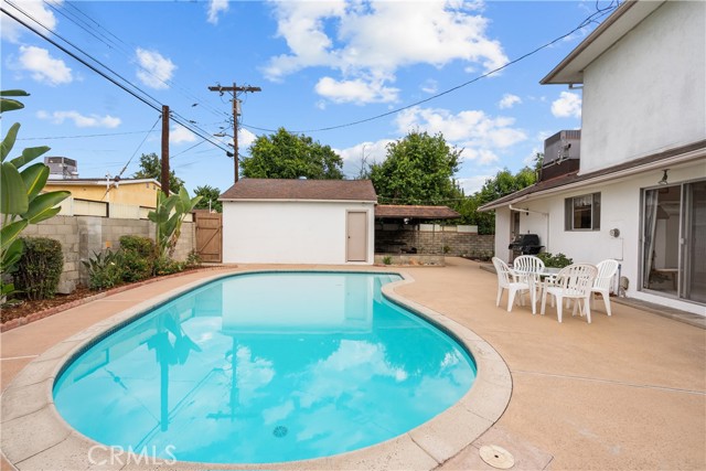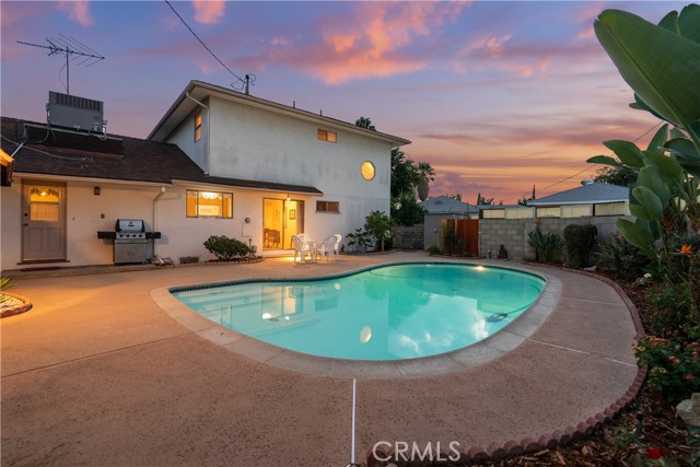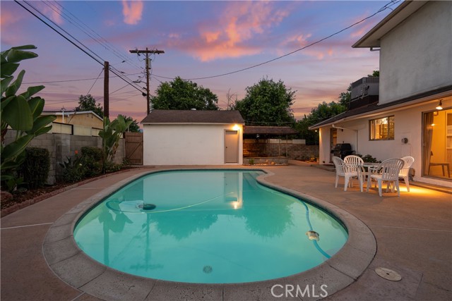 Welcome to this delightful mid-century residence, original family owned, proudly offered for the first time on the market. Located in a desirable North Hollywood neighborhood and surrounded by a welcoming community experiencing ongoing revitalization, this entertainer’s dream blends timeless character with thoughtful modern upgrades. Boasting three spacious bedrooms, three bathrooms, a den, and a sparkling swimming pool, this home is designed for comfort, function, and indoor-outdoor living. A inviting front porch sets the tone as you enter through the entry foyer into the home. The sun-drenched living room features expansive windows that fill the space with natural light—ideal for relaxing evenings or after-dinner conversation. The adjacent den, complete with a handsome wood-burning fireplace, offers the perfect cozy space to unwind with a book or enjoy movie night. At the heart of the home is a spacious cook’s kitchen featuring tile countertops, ample cabinetry, and a sunny breakfast nook. Equipped with an electric double oven/range, dishwasher, microwave, and refrigerator, this kitchen is ready for everyday meals or entertaining. A separate dining room offers the perfect setting for intimate family dinners or festive gatherings. Nearby, a laundry room provides abundant storage and backyard access for added convenience. Upstairs, the spacious primary suite is a serene retreat, complete with a walk-in closet, secondary mirrored closet, and en suite bathroom featuring a dual-sink vanity, soaking tub, tiled shower, and built-in storage. Downstairs, a secondary primary bedroom also offers an en suite bathroom and walk-in closet—perfect for guests or multi-generational living. The third bedroom is generously sized with ample closet space and easy access to a large hall bathroom with a shower-over-tub combo. A home office nook offers a great space for remote work, study, or a home gym setup. Step outside to your private backyard retreat, featuring a sparkling pool, covered patio, and lush landscaping. The north-facing backyard enjoys morning sun and afternoon shade—ideal for al fresco dining, lounging by the pool, or weekend entertaining. Conveniently located near great shopping, schools, dining, entertainment, and major freeways and transit, this North Hollywood treasure is ready for its next chapter. Whether you're hosting family gatherings, relaxing poolside, or enjoying the community vibe, this home offers the perfect blend of comfort, charm, and location.