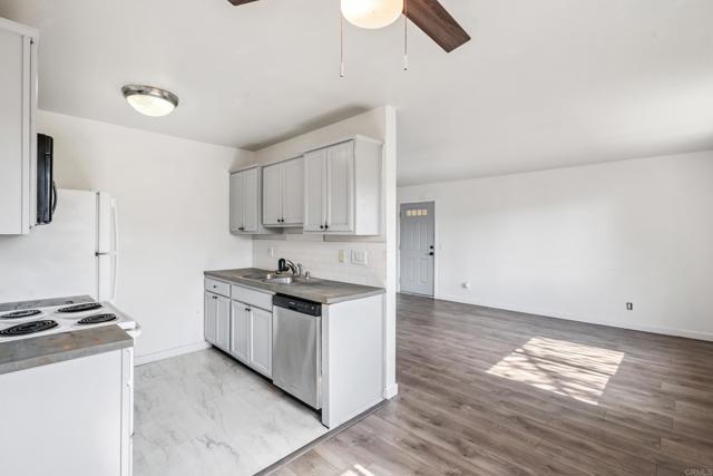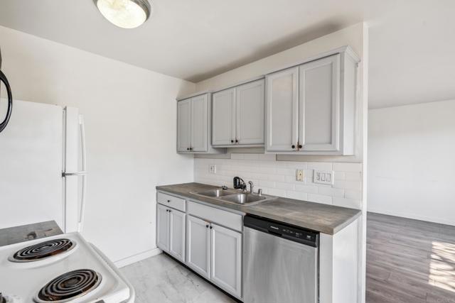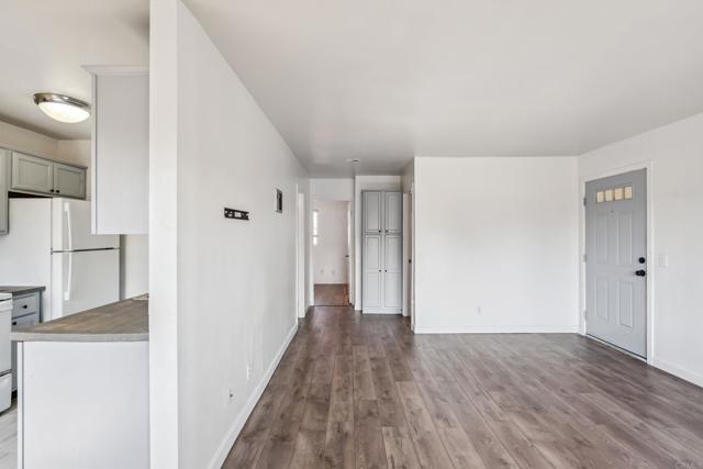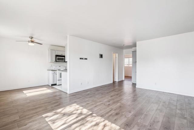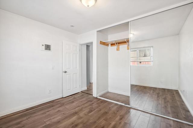 One of the most affordable units in San Diego, claim your stake in a gated community with close freeway access! This 2 bedroom, 1 bathroom unit is upstairs, no neighbors above you! Location is close to restaurants, schools, and shopping! Unit is equipped with a wall AC, recently updated wall heaters, mirrored closet doors, updated laminate flooring and counter tops, dual pane windows, and upgraded vanity and toilet for more refined living. Unit comes with one parking spot, with plenty of street parking. Laundry room on site, with low HOA dues (includes water)... whether you're looking to own or utilize as a rental, this unit is ready to go!