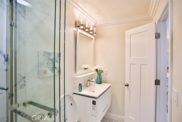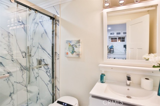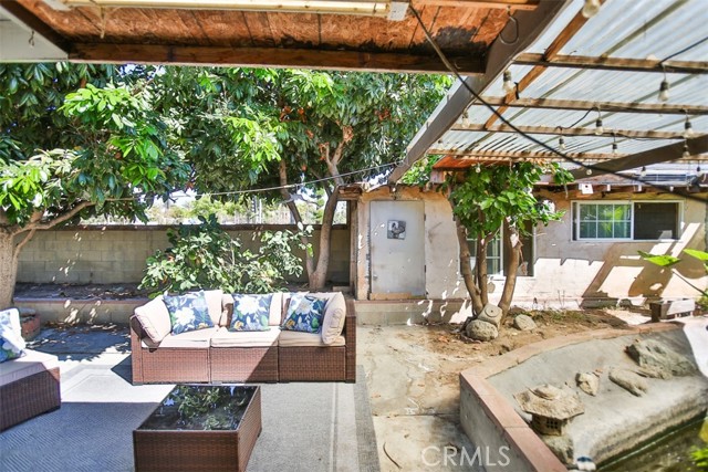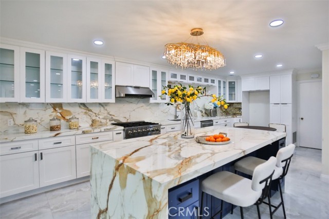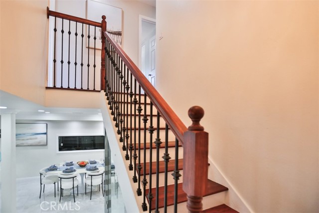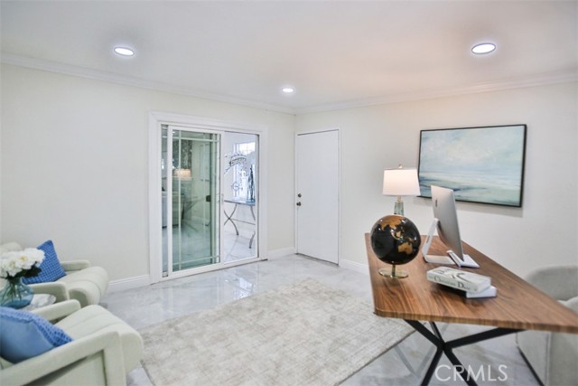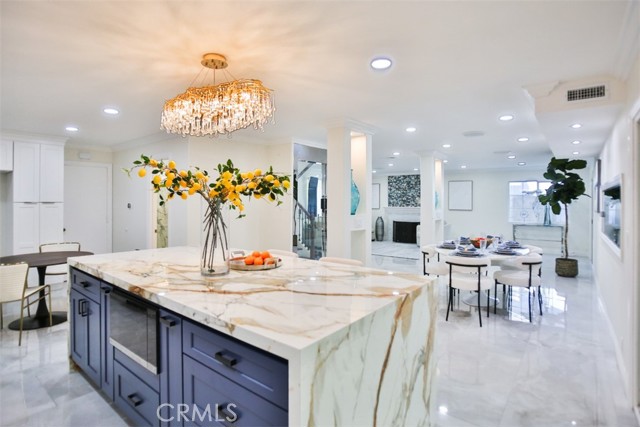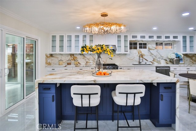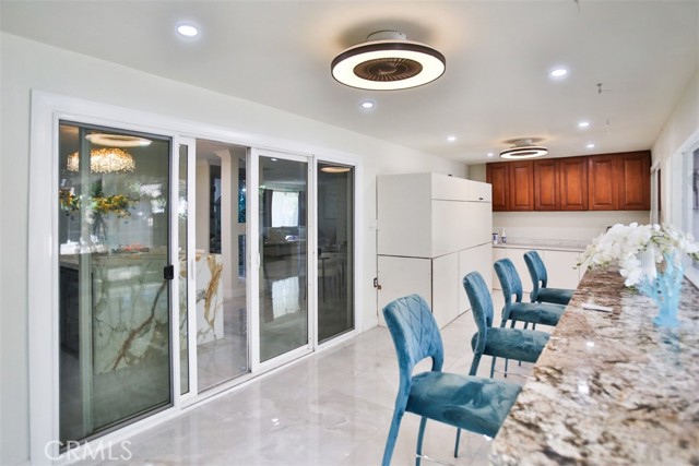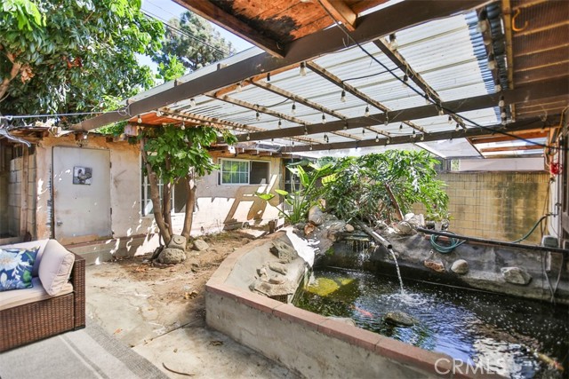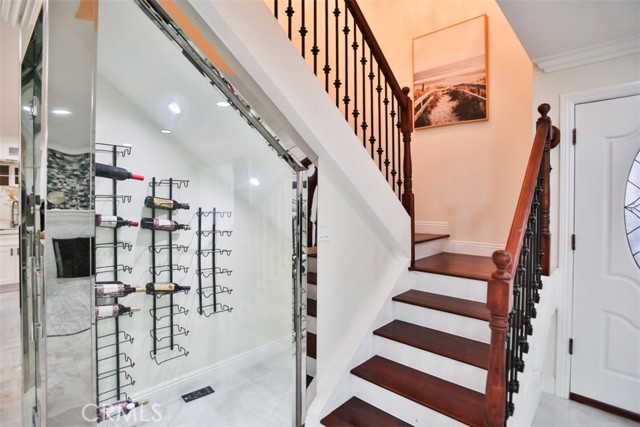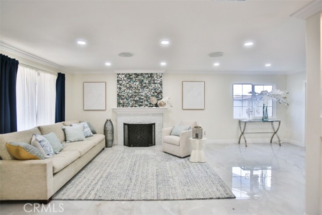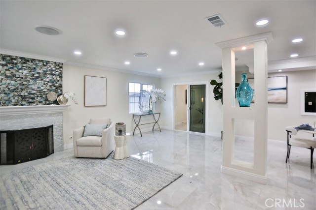 Welcome to 17230 San Lorenzo Circle, set within the coveted Green Valley neighborhood of Fountain Valley. This fully renovated home offers 4 bedrooms, 3 bathrooms, and a versatile bonus room across approximately 2,288 square feet on a 5,400 sq ft lot. Designed with modern living in mind, the open-concept layout is filled with natural light and enhanced by custom recessed lighting. The chef’s kitchen impresses with a dramatic waterfall island and seamlessly integrated appliances, while the living room is an entertainer’s dream—showcasing a built-in wall aquarium and a striking illuminated wine cellar. Upstairs, you’ll find all bedrooms, including a luxurious primary suite featuring a private balcony, expansive walk-in closets, and a spa-inspired bath. Indoor-outdoor living is redefined with an enclosed glass patio that opens to a tropical retreat complete with a koi pond and mature longan trees. Additional highlights include solar panels, a low $45/month HOA with access to pools and clubhouse, and a prime location within walking distance of Mile Square Park and top-rated schools. Blending luxury, comfort, and community, this Fountain Valley gem is truly one-of-a-kind.