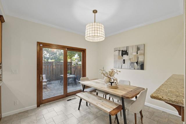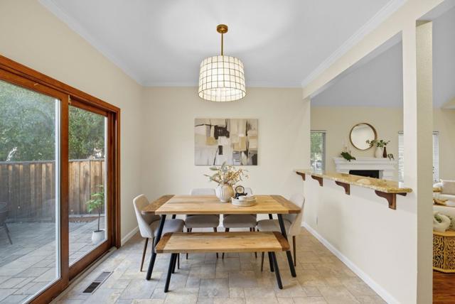 Welcome to this updated free-standing townhome in the highly sought-after Blossom Tree community. The spacious open-concept living room features soaring cathedral ceilings and a cozy fireplace, creating the perfect space for relaxing! The remodeled kitchen boasts elegant coffered ceilings, granite counters, stainless steel appliances, ample storage, and updated fixtures. An adjacent dining area includes a convenient breakfast bar and opens to a landscaped backyard with pavers, plantings, and a grass area. Upstairs, three generously sized bedrooms offer abundant natural light, ample closet space, and engineered hardwood flooring. The primary suite is a private retreat with vaulted ceilings and a large bathroom featuring dual sinks, a spacious shower, and a skylight. All bathrooms have been tastefully updated with granite countertops, modern tile flooring, and contemporary light fixtures. Additional highlights include central A/C, an in-unit washer and dryer, a two-car attached garage, and a built-in security camera system for peace of mind. This home is served by excellent schools and is conveniently located just minutes from shopping, dining, and Oakridge Mall. With easy access to Highways 85 and 87, as well as the VTA Light Rail, commuting throughout the Bay Area is a breeze!