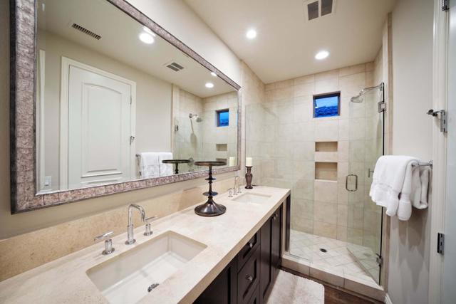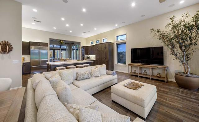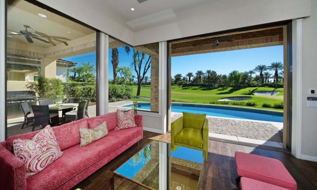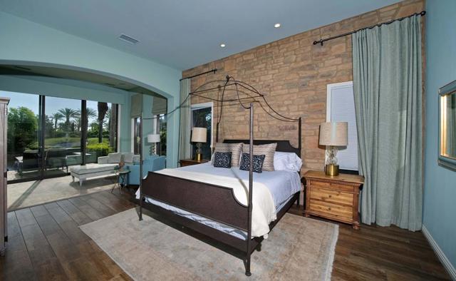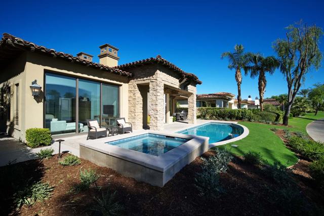 Recently renovated, the backyard elevates outdoor living with a refreshed pool and spa that glow a pretty blue, enhancing entertaining spaces and framing tranquil views toward the Jack Nicklaus Signature Golf Course.The rustic stone features of this 4,064 square foot Tuscan styled home welcomes you into this special place that is a dream for the couple who enjoys entertaining. The dramatic great room features a living room and a comfortable family room that adjoins the gourmet kitchen. The graceful lines of the soffits mirror the shape of the striking kitchen island and the curve of the wet bar. Rotund tower elements define the entry to the home and to the master suite with a sitting room and luxurious bathroom. The expansive guesthouse features a full sitting room and bedroom and offers guests a wonderful escape. Impressive columns with the rustic stone define the rear verandas and extend the entertaining space of this home framed by peaceful vistas of the Jack Nicklaus Signature Golf Course.