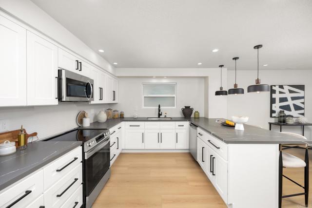 Views & Modern Coastal Living in South Redondo! This fully remodeled two-story home pairs contemporary design with everyday comfort in one of Redondo Beach’s most desirable neighborhoods. The sunlit upper level features wide-plank oak floors, a sleek fireplace, and glass sliders opening to a balcony with stunning vistas—ideal for morning coffee or sunset gatherings. A designer kitchen boasts quartz counters, matte black hardware, pendant lighting, and stainless appliances, flowing seamlessly into the dining area. Downstairs, the primary suite offers patio access and a spa-inspired bath with brushed brass fixtures and a walk-in shower. Three additional bedrooms add versatility, while the private backyard with tiered deck and lounge areas sets the stage for effortless entertaining. Moments from Riviera Village, award-winning schools, and the beach.