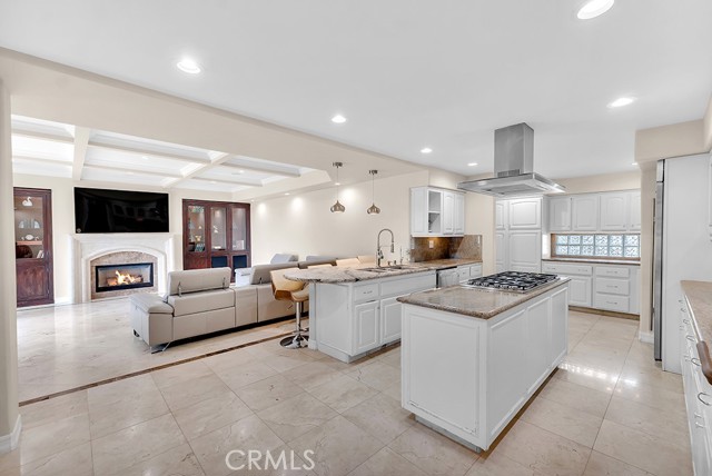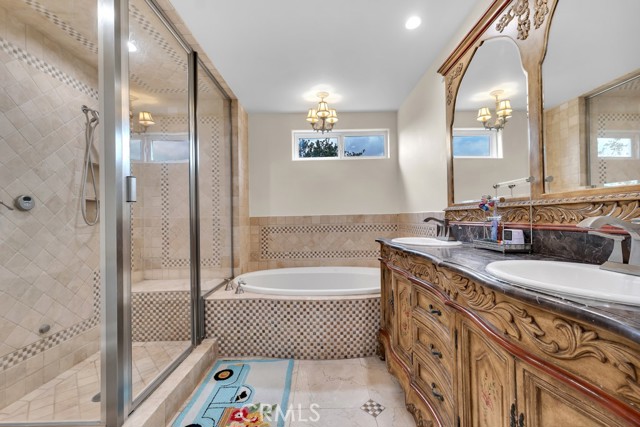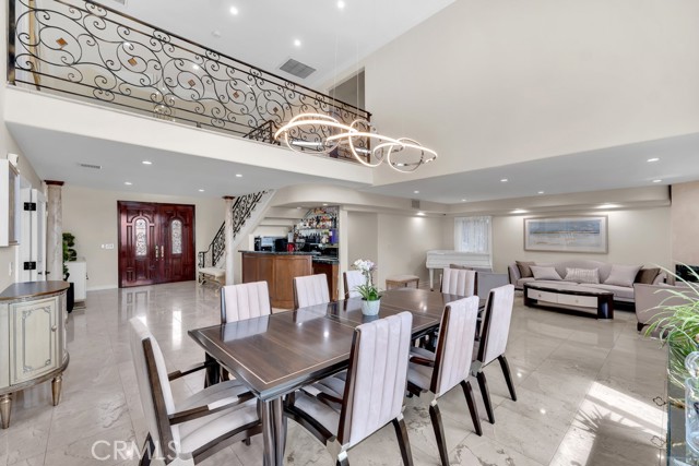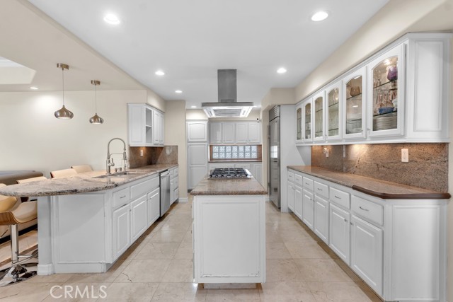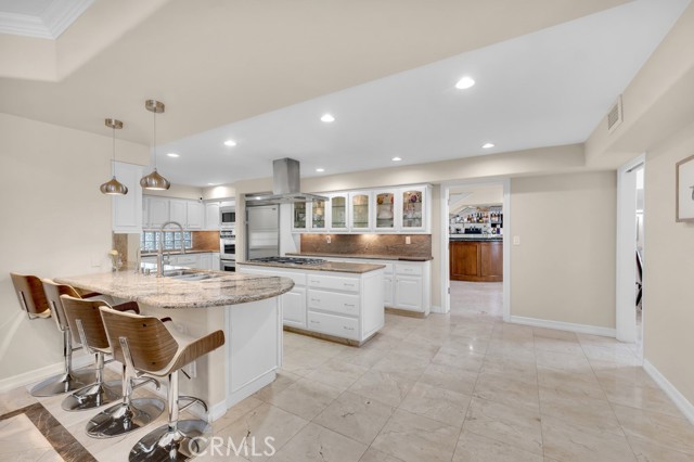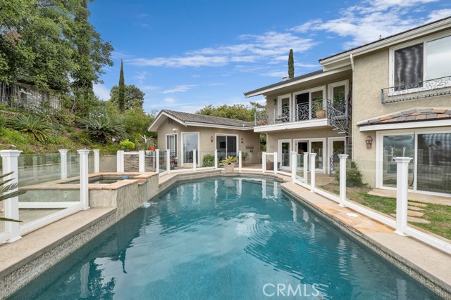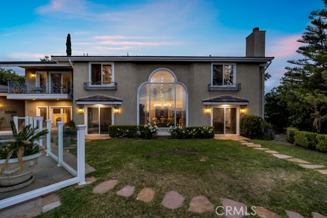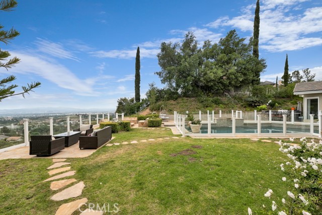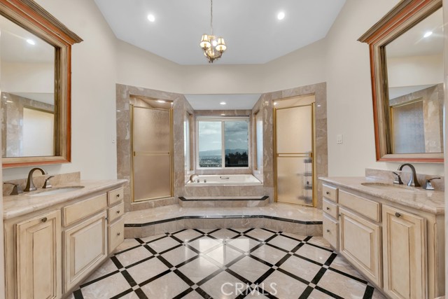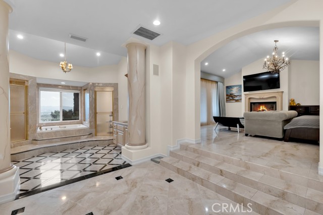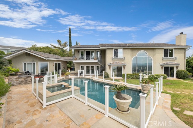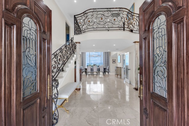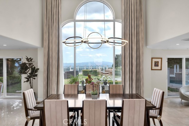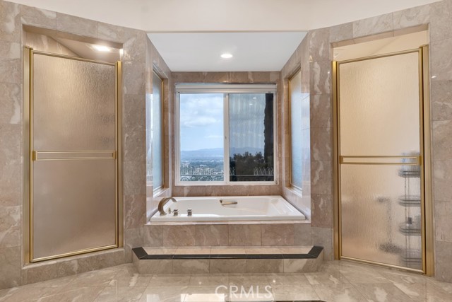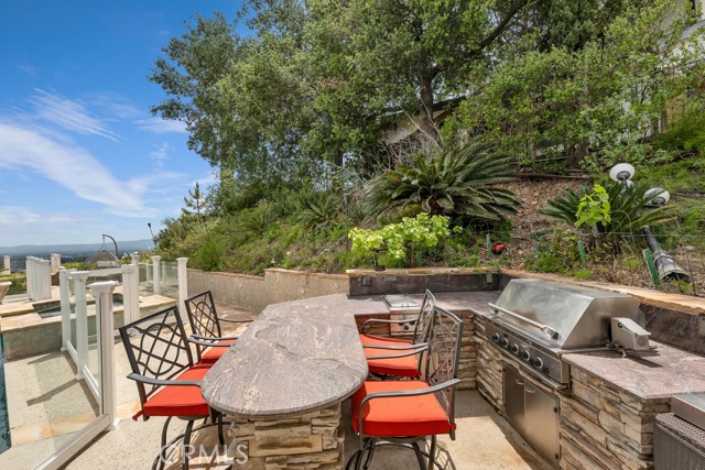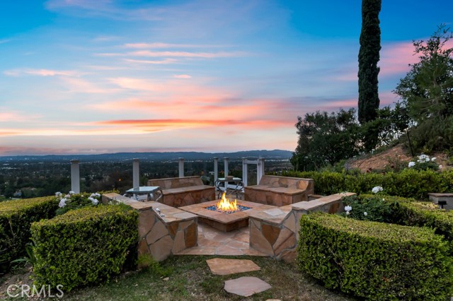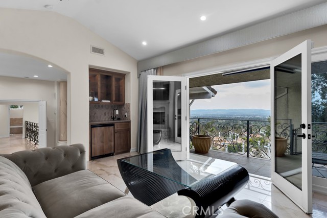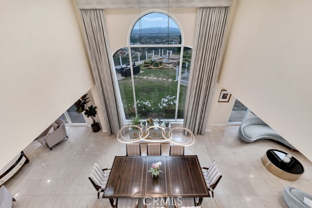 This Castle on the hill is an Enchanting Estate offering comfortable and luxurious indoor/outdoor living with one of the best views in the valley! This home reigns over unparalleled City and Golf Course views. There is a grand Foyer w/Marble Flooring, Vaulted Ceilings, and breathtaking floor-to-ceiling views from a magnificent window. The dazzling open concept design highlights an elegant Dining Room with soaring ceilings, awash in natural light, and flanked on either side by sleek living rooms. Also in this large open space is an impressive wet bar designed to perfectly maximize the space under the elegantly designed staircase. The beautiful Chef’s Kitchen features a breakfast bar, formal eating area, Granite Counter tops, New Mahogany Cabinets, a 6-Burner Cook Top, Double oven, and Built-in Microwave. The Family room has built-in cabinets, a fireplace, recessed lighting and a speaker system. The loft is perfect as an Office/Library. Two bedrooms are separated by a full bathroom complete with Jetted Tub and Steam Shower. The one-of-a-kind Primary Bedroom Retreat boasts a large Sitting Room, double sinks, dual showers separated by the Jetted tub, and a huge walk-in closet. This Bedroom has a Coffee Bar w/built-in fridge, a fireplace, and a custom terrace featuring a spiral staircase providing direct access to the backyard. This Entertainer’s Paradise features unobstructed views of the 16th and 17th holes of the Porter Valley Golf Course and a City sight line spanning from Burbank to Thousand Oaks. This serene setting features natural stone hardscape and lush landscaping which compose dedicated areas to relax, dip into the magnificent Pool and Spa, warm yourself by the welcoming fire pit, or honing your skills as a grill master at the built-in BBQ. The Guest House provides you with options galore! This magnificent view home is truly the Crown Jewel of Porter Ranch with impressive details at every turn, space, serenity, and the promise of an incredible lifestyle.