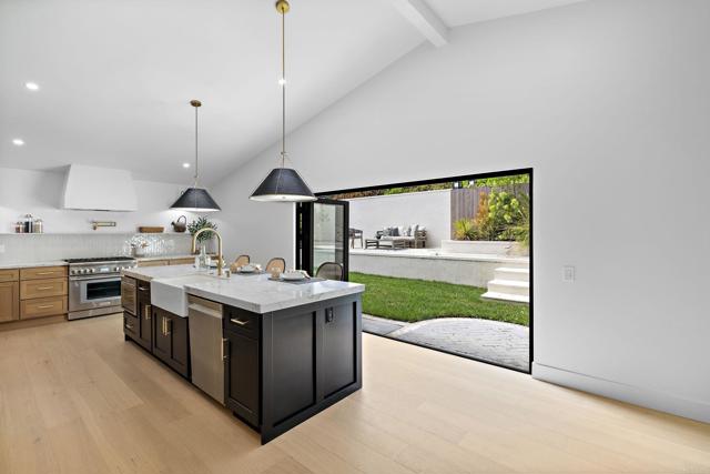 Laguna Niguel Sanctuary - Beautifully remodeled two-story in sought-after Pacesetter II with no HOA fees! Soaring ceilings and a cozy fireplace set the tone for light-filled living spaces that flow from dining with a built-in bar to a stylish family room. The chef’s kitchen impresses with oak cabinetry, a dramatic black island, premium appliances, and dual multi-fold doors opening to a private backyard—ideal for entertaining or relaxing. Upstairs, the primary suite offers a walk-in closet and spa-like bath, joined by three additional bedrooms and a full bath. A versatile downstairs bedroom with its own bath creates the perfect guest suite or office. Minutes from beaches, trails, and the Lantern District, this home delivers coastal living at its best.
