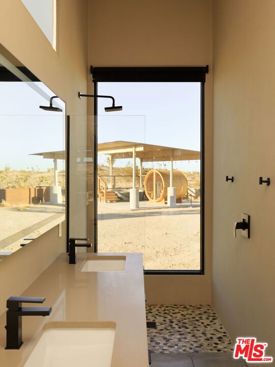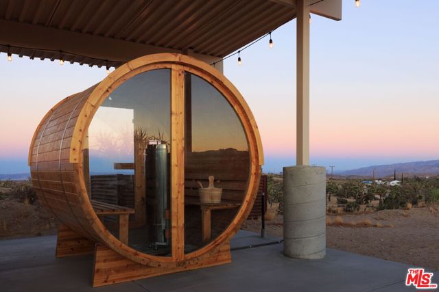 Perched on a private hilltop with sweeping 360-degree views, The Foundry is one of the top-performing vacation rentals in the High Desert, grossing approximately $165,000 annually and ranking in the top 5% of Airbnbs in Joshua Tree. This proven track record makes it a standout opportunity for investors seeking reliable returns, with the added option of continued professional management for true turn-key ease. Designed by renowned local developer Building Joshua Tree, the newly built residence merges timeless mid-century architecture with the rugged elegance of its surroundings. Expansive glass walls and soaring ceilings flood the interiors with natural light, while a chef's kitchen with Cafe appliances, two serene bedrooms, and spa-inspired bathrooms balance style with comfort. A retractable-glass sunroom opens to wellness amenities including a cedar hot tub, barrel sauna, and cold plunge that elevate both guest satisfaction and repeat bookings. At the same time, The Foundry offers more than just investment potential. Perfect as a refined second home or an escape from the city, its seamless indoor-outdoor living and tranquil desert setting create a lifestyle rooted in peace, privacy, and connection to nature. Whether enjoyed as a personal retreat or leveraged as a high-performing rental, The Foundry delivers on both lifestyle and legacy.