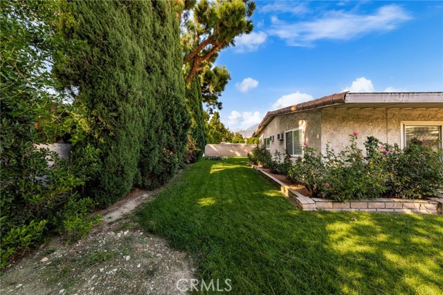 Welcome to 1613 N. Erin Avenue, a rare Upland estate set at the end of a quiet cul-de-sac on an expansive lot. The main residence offers four bedrooms and three bathrooms with a functional layout, including a spacious primary suite, with a fireplace, formal dining room, living room, kitchen, and inviting family room. An updated attached two-car finished garage features epoxy floors, built-in cabinetry, and recessed lighting, plus a brand-new water heater for added peace of mind. A beautifully updated guest house/ADU of nearly 1,000 sq ft with high ceilings includes a full kitchen, living room and large bedroom with plantation shutters overlooking colorful bougainvillea , and a stylish bathroom with a walk-in shower — ideal for extended family, guests, or rental potential income. The large private backyard is a true retreat with lush lawn, endless rose bushes, apricot, peach and tangerine trees, mature landscaping, and room to create your dream outdoor oasis. Plenty of room to build a pool. Tall ficus trees along both perimeters of the backyard ensure complete privacy from neighbors. All tucked away in a prime Upland location near top schools, shopping, and dining, and easy access to the 210 and 10 fwys.