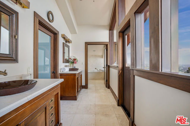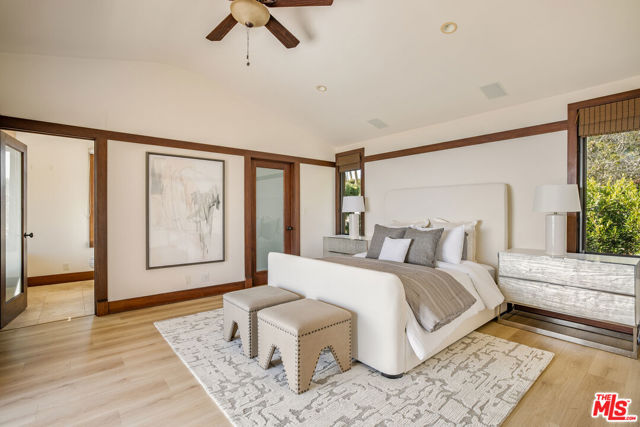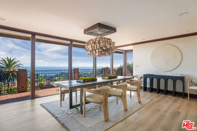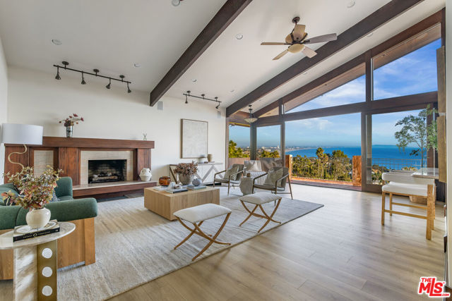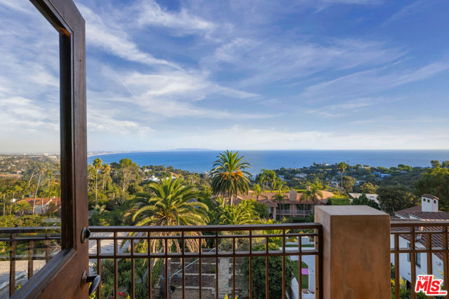 Breathtaking Pacific Palisades Mansion with Panoramic Ocean Views! Welcome to this magnificent 6-bedroom, 8.5-bathroom estate designed by the renowned architect Ray Kappe, offering unparalleled panoramic views from Downtown LA to Catalina Island, the Queen's Necklace, and the beaches of Malibu. Situated in the heart of Pacific Palisades, this stunning property is located moments from hiking and biking trails and all the best the neighborhood has to offer. Remodeled in the early 2000s, this home sits above the serene grounds of Lake Shrine, boasting the best views in the neighborhood. Floor-to-ceiling windows throughout capture the sweeping coastline, creating an incredible setting for both private relaxation and entertaining.The heart of the home features a fully equipped cook's kitchen with an open-concept design that flows seamlessly into the formal dining area, perfect for hosting. Additional highlights include multiple family rooms, a media/screening room, an exercise studio with an en suite bathroom, maid's quarters, and a custom wine cellar with a tasting area. Outdoors, enjoy the expansive deck overlooking the Pacific, with direct access to the lap pool and spa below a perfect backdrop for sunset gatherings or lounging in the sun. The two luxurious primary suites offer breathtaking ocean views, while the remaining three suites all include private en-suite bathrooms. This estate is equipped with an Enphase Solar Energy system for independent energy efficiency. The property includes a separate 3-car covered garage and a spacious 50' x 75' lower parking area capable of accommodating up to seven cars plus an RV, providing exceptional convenience. A charming guest house with a kitchenette and bathroom sits below the pool area, offering a peaceful retreat for guests. Experience luxury coastal living in this Zen-like atmosphere exceptional one-of-a-kind Pacific Palisades home, offering an unmatched blend of architectural elegance, modern amenities, and sweeping ocean views.