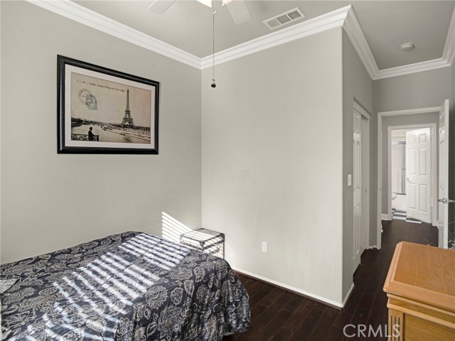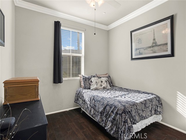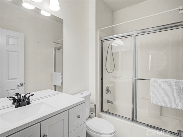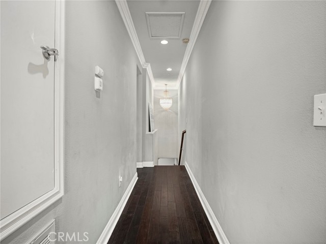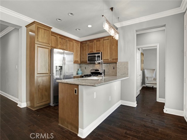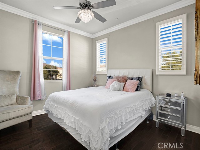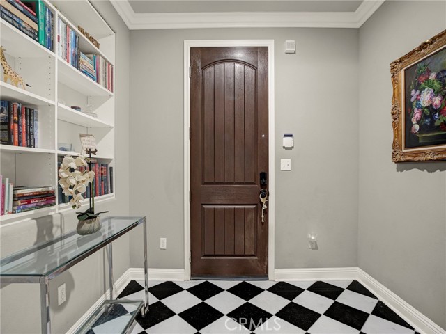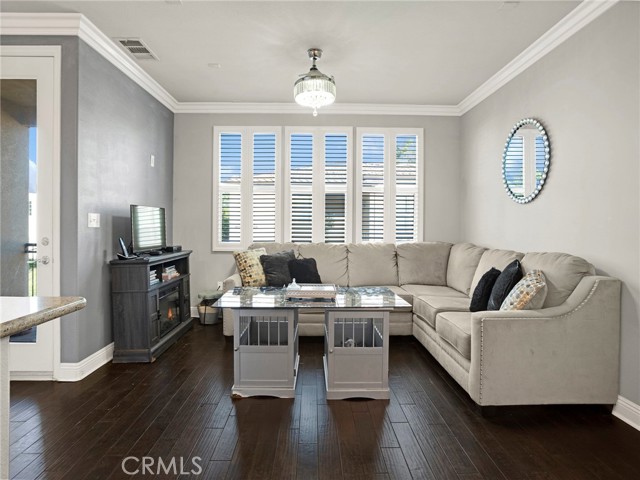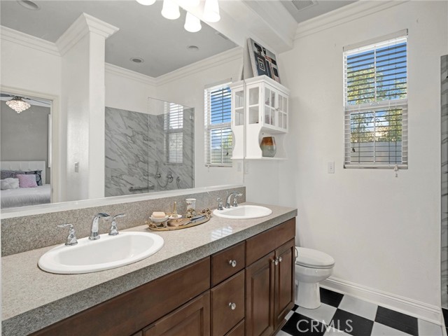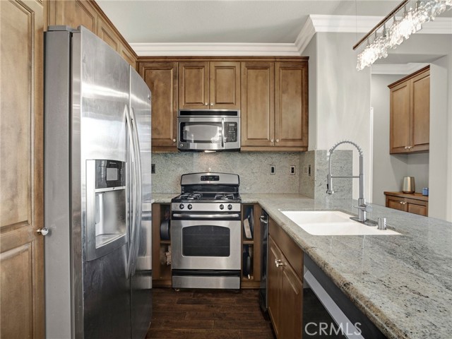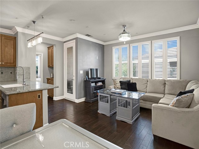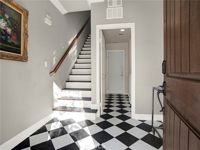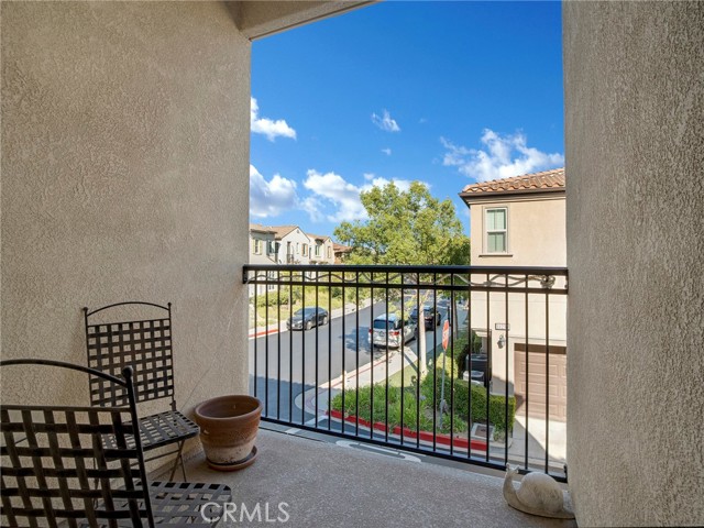 PORTER RANCH | Rare, updated waterfront unit in the coveted guard-gated Aldea community. This home is one of only a handful positioned in a serene setting, next to lush landscaping and soothing sounds of a cascading waterfall. From the moment you enter, the checkered tile flooring in the foyer sets a sophisticated tone. The first level features direct access to a 2-car garage, a dedicated laundry room with built-in storage, and a welcoming entryway. Upstairs, the layout unfolds beautifully, showcasing crown molding, hand-scraped hardwood flooring, plantation shutters and high-end light fixtures. To the right, a generously sized secondary bedroom and full bath provide comfort, privacy and flexibility. Straight ahead, the open-concept living space is drenched in soft, natural light and is a seamless blend of kitchen, dining, and family room that opens to a private patio. The kitchen is thoughtfully upgraded with granite countertops, stainless steel appliances, and abundant cabinetry. Privately tucked away at the far end of the home, the corner primary suite offers a peaceful retreat with mountain views. The fully remodeled en-suite bathroom features a spa-inspired shower, creating a luxurious escape, with endless hot water from the newer tankless unit. Living in Aldea means enjoying resort-style amenities: a sparkling pool, relaxing spa, BBQ area, and beautifully landscaped grounds. All this and just minutes from The Vineyards at Porter Ranch, top-rated schools, scenic hiking trails, and convenient freeway access. Don’t miss your chance to own one of Aldea’s rare waterfront gems — a true blend of luxury, location, and lifestyle.