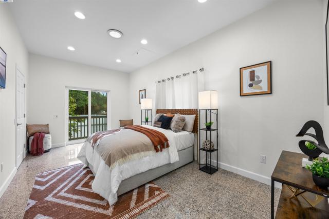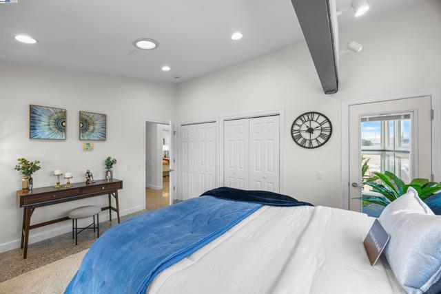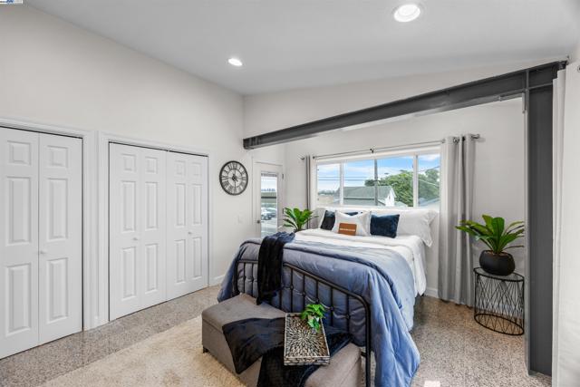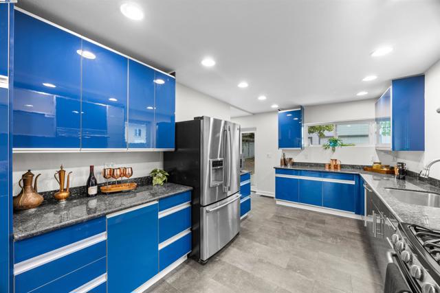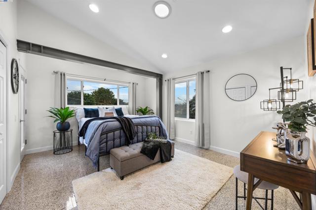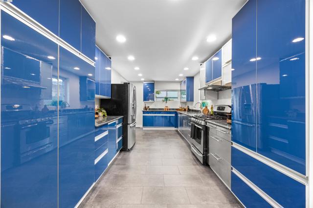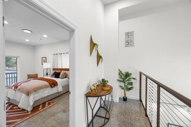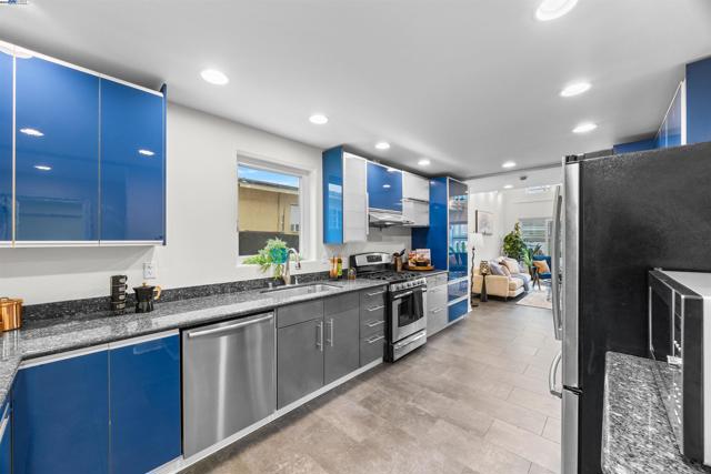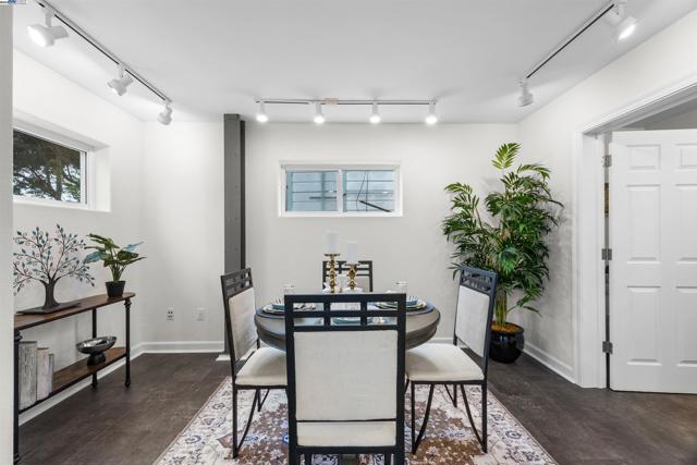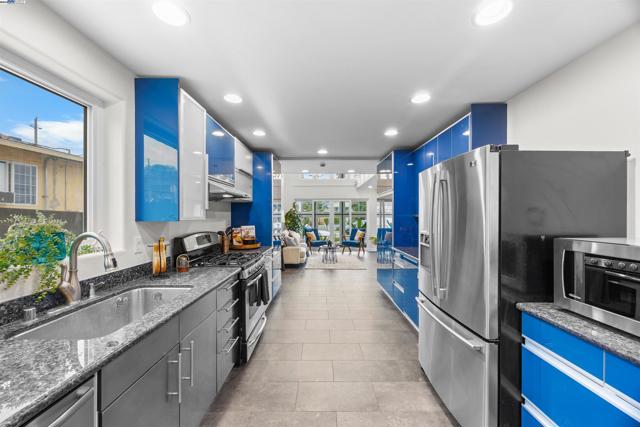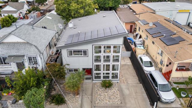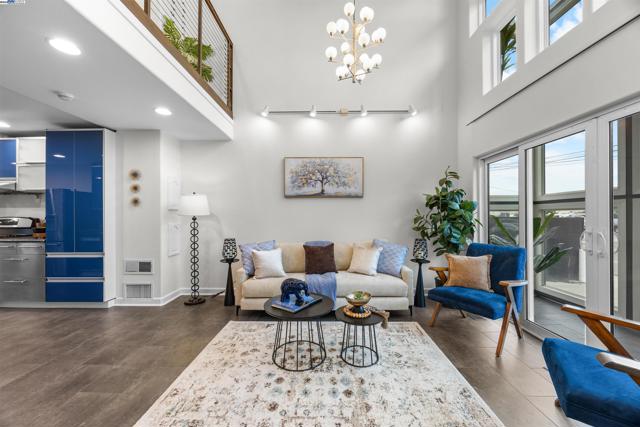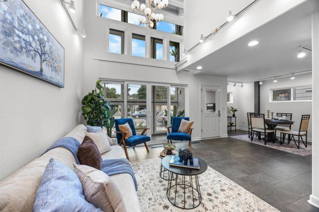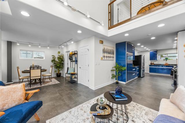 Years ahead of its time, this custom smart home was eco-friendly before green was IN! With a distinctive facade & dramatic metal skillion roof, this permitted whole home reconstruction features newer industrial decor finishes, steel I-beam & concrete slab engineering, dual zone hydronic radiant heat system & a south-facing solar atrium for passive heating. Hard-ethernet wired enabled for computerized network automation! Anchored by new LVT flooring, the main level urban/loft aesthetic is evident in an expansive kitchen with the cobalt blue cabinets & stainless steel appliances. The indoor mech room houses an eco-conscious boiler system, washer & dryer. The upper level is a 2-bed, 1-bath sanctuary perched aloft a vast open atrium. Sited on a deep lot w/generous rear setback, the freshly re-roofed oversized garage/workshop is a haven of possibilities for the car, shop, rec or small business enthusiast. Develop the property & envision live/work living or an ADU (buyer to verify). Zero pest, low maintenance grounds, walnut & avocado trees, long driveway w/plentiful off-street parking & generous side yard for a possible dog/pet run keep stress to a minimum! Central access to BART, downtown, Marina Square, freeways, airport & bridges!