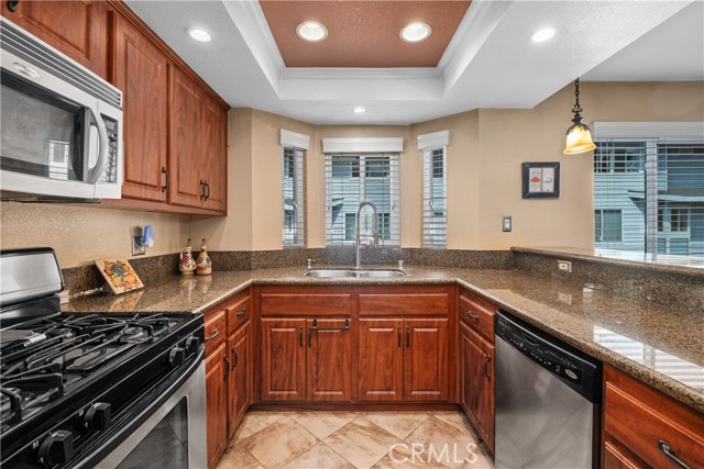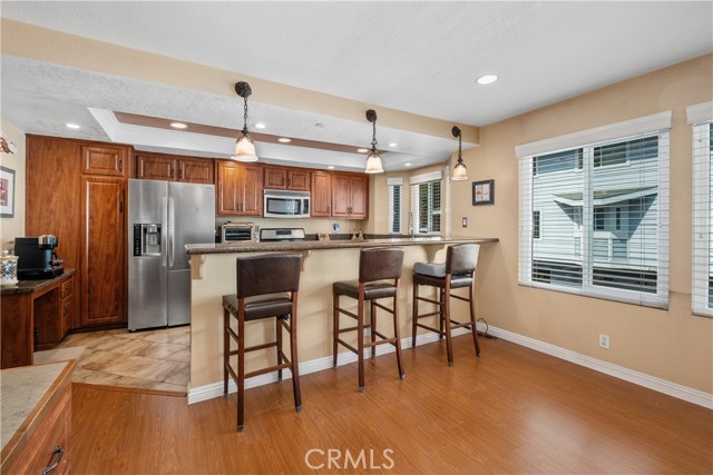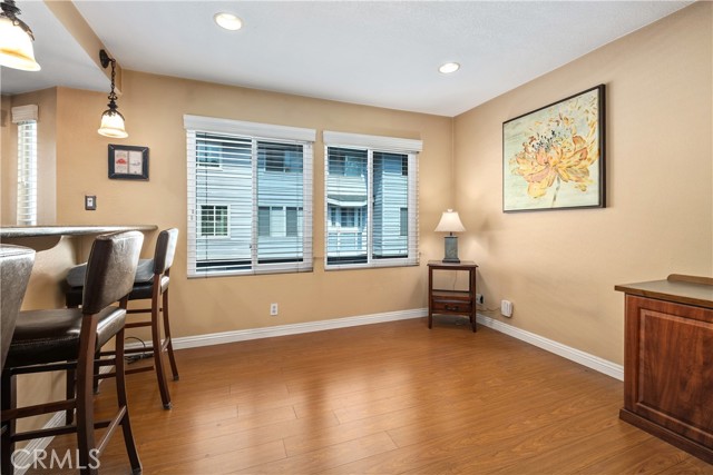 Soak in the serenity from the front courtyard of this beautiful Cape Cod style townhome in fabulous Seawind Cove. The interior has been thoughtfully updated with brand new carpet and new vinyl windows (2025) and includes a remodeled kitchen with refaced cabinetry, recessed lighting, and a wraparound granite breakfast peninsula with overhead pendant lighting. A newly tiled fireplace with custom mantel represents the centerpiece of the tall, vaulted ceiling living room, while elegant wood railings with wrought iron spindles highlight the dining room and stairwells. The upper level includes 3 large bedrooms with a well-appointed primary complete with a luxurious en-suite bathroom offering a spa-like tub, dual vanities, separate shower, and a spacious walk-in closet. The gated community itself is equally impressive, with a sparkling pool, relaxing spa, and a well-appointed clubhouse. Recent HOA improvements include newer roofs, siding, fresh paint, rebuilt composite patios, and newly paved asphalt streets.