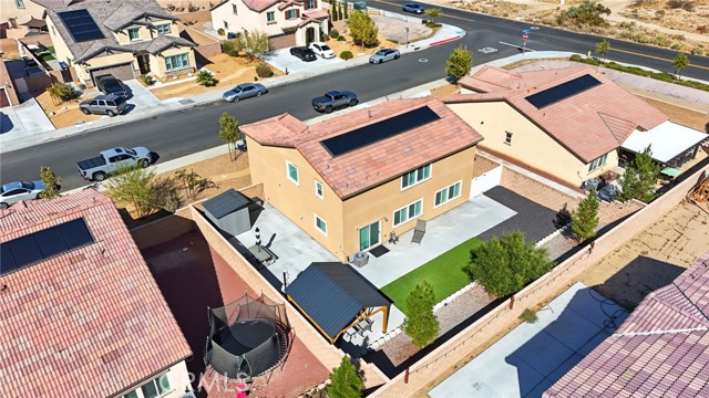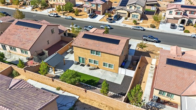 MOTIVATED SELLERS! Exceptional 2020 two-story home with over $55K in upgrades! This immaculate 4BR/3BA offers 2,235 SF on a 7,200 SF lot in desirable Victorville. Bright open floor plan features beautiful wood-look flooring, plantation shutters throughout, and recessed lighting. Stunning kitchen/dining area showcases modern dark cabinetry, stainless appliances, stylish pendant lighting, and abundant natural light. Spacious upstairs loft provides versatile flex space. Well-appointed master suite includes dual vanity and walk-in closet. Generous secondary bedrooms plus convenient upstairs laundry. Technology & Efficiency - Over $30K in Upgrades: Smart home equipped with multiple network drops, professional Lorex camera system, SimpliSafe security, and Nest thermostat with BRAND NEW AC unit. SOLAR PANELS COMPLETELY PAID OFF - enjoy massive energy savings with zero monthly payments! Outdoor Paradise: Entertainer's dream backyard with $10K+ custom concrete, $15K professional landscaping including artificial turf, magnificent custom pergola with fire pit area, terraced retaining walls, and storage shed. Pristine 2-car garage, security cameras at entry, and turnkey condition throughout. Better than new with all upgrades complete! SELLERS READY TO NEGOTIATE! Don't miss this rare opportunity - schedule your showing today!