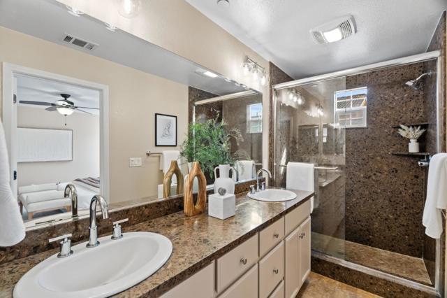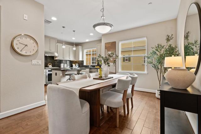 Comprehensively remodeled, this spacious move-in ready townhouse is peacefully nestled beside a scenic park and playground in one of Santa Clara's most desirable communities, just a short drive from the South Bay's largest employers and finest amenities. Smartly updated throughout, the intuitive floor plan ensures comfort and versatility for those craving private office space thanks to three full ensuites, including a ground-floor junior suite and dual upstairs ensuites, showcasing a luxurious master suite with dual sink vanity, separate toilet room, walk-in shower, and french door walk-in closet with built-in storage. The expansive open concept living area with hand-scraped engineered wood flooring is bathed with natural light through panoramic windows and features a spacious updated kitchen with granite countertops & stainless appliances, in-ceiling LED lighting, a utility room with washer and dryer, & a bonus office area. Benefiting from cheap Santa Clara utilities and with too many upgrades to catalog, including newly installed hardwood flooring upstairs, tri-zone central heat and air conditioning, and a fresh professional paint job, this spacious home has been put through an 18-point inspection regimen and is also identified as *Certified Pre-Owned* with a home warranty.