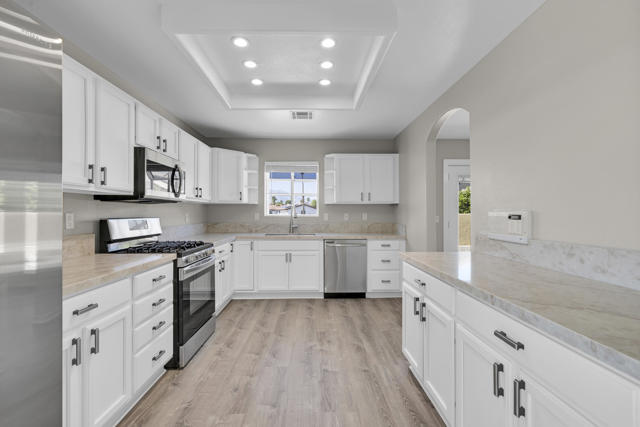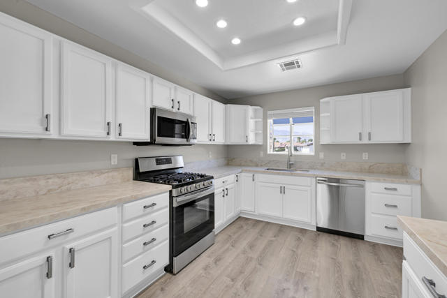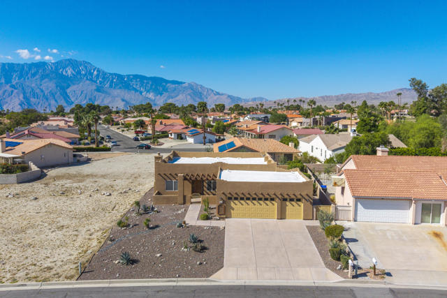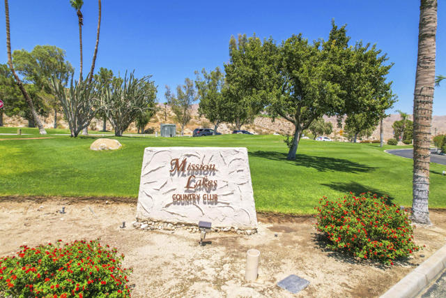 This one is a showstopper! Absolutely stunning Panoramic Mountain View from your back patio area. Beautifully redone to perfection, Quartz Kitchen counters, New appliances, Recess lighting, custom ceiling fans thru-out, All new flooring, Freshley painted, Fireplace, New faucets, New roof (2 yrs old), Gorgeous 3 car garage, with New doors. Super nice low Maintenace desert landscaping. This is a must see incredible opportunity in the highly sought after Mission Lakes Country Club on the Northside of Desert Hot Springs with AMAZING MOUNTAIN VIEWS, a semi-private 18-hole championship 'Ted Robinson' DESIGNER GOLF COURSE, onsite pro shop and a MASSIVE CLUBHOUSE adjacent to the enormous pool with dual spas, professional tennis courts, modern fitness center, beautiful banquet room, fine dining area, manned bar, and the casual Sand Wedge Cafe. The LOW MONTHLY HOA fee includes UNLIMITED GOLF for two owners, basic cable/ internet service, and access to the MISSION LAKES INN which provides stellar accommodations for club visitors and guests. Just minutes from downtown Palm Springs, the I-10 Freeway, and the Palm Springs International Airport.