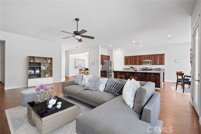 Experience the ultimate living in the prestigious Four Seasons 55+ community, where every day feels like a vacation. Enjoy access to a resort-style clubhouse, sparkling pool & spa, fitness center, tennis courts, scenic walking trails, an on-site salon, and an endless calendar of social clubs and activities. This beautifully maintained 2B 2.5B home plus office offers 2,461 sq. ft. of thoughtfully designed living space. The open split-wing layout ensures privacy while providing the perfect flow for entertaining or quiet relaxation. Inside, you’ll find rich wood-look flooring, a formal dining rm, and kitchen with granite countertops, bar seating, and abundant cabinetry. The primary suite offers dual sinks, a soaking tub, separate shower, and a walk-in closet you’ll love. Additional features include a tankless water heater and an oversized garage with space for storage, or even a golf cart. The large backyard is ready for you to create your ideal outdoor retreat.