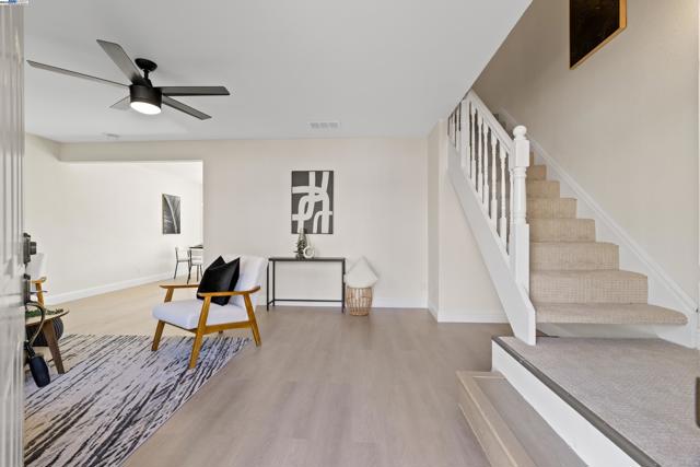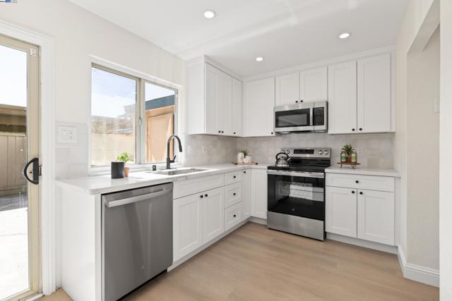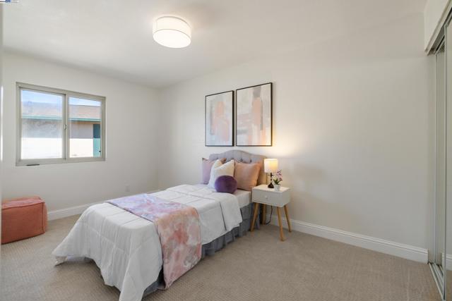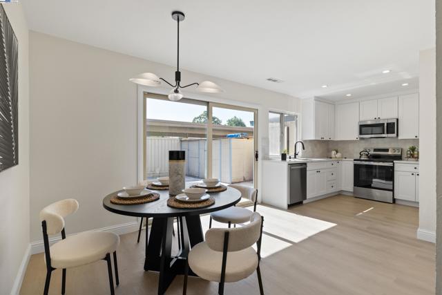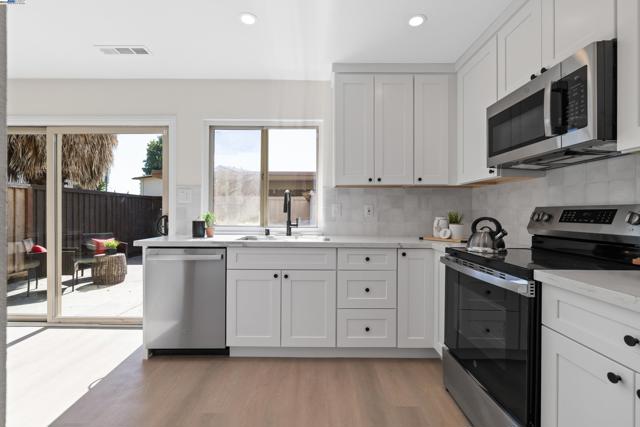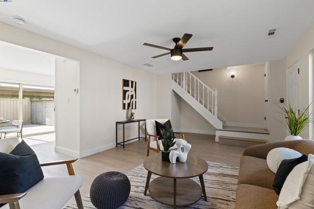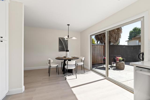 Fully renovated corner-unit townhome with a good-sized backyard! Situated in a quiet yet commuter-friendly neighborhood, this home has been beautifully renovated and is the perfect starter home for your family. It includes three bedrooms and a full bathroom upstairs, plus a half bath downstairs, offering a well-designed floor plan. Step inside to a roomy, light-filled living room perfect for family nights or hosting friends. Tastefully renovated kitchen features new cabinets, quartz countertops and stainless steel appliances. Enjoy the convenience of a low-maintenance backyard, easily accessible through a sliding door from the kitchen and dining area. Other wonderful features include an in-unit laundry area, central heating, new interior paint, new light fixtures, new laminate flooring and carpet throughout, and more! The property includes covered parking accessible directly from your backyard gate and there is plenty of street parking available. Location is everything — conveniently situated near local schools, parks and everyday amenities, you’ll also enjoy being just minutes from Costco and popular shopping and dining plazas. Easy access to Interstate 880, Highway 92 and Highway 84 makes commuting and travel throughout the Bay Area simple. Come check it out!