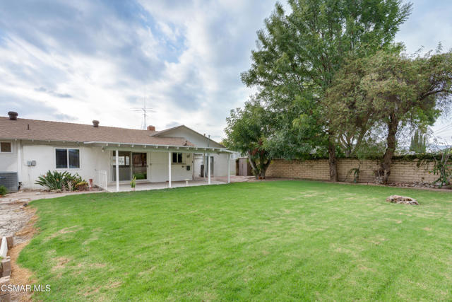 What a great find in central Simi! Don't miss this 4+2 single-story ranch home on an exceptional 9,370 sq. ft. lot with exciting ADU potential! All new paint inside and out! Newer permitted roof 2022. Plus th,ere are renovations galore! Remodeled bath and master bathroom. All tiled floors throughout. No carpet! Dual-paned windows, smoothed ceilings with LED recessed lights, ceiling fans in all bedrooms, a newer oversized air conditioner to keep you perfectly cool, and a living room fireplace to keep you toasty in winter. 2nd bedroom has an attached full bath with a shower/tub combo. The kitchen has a gas range, stainless steel dishwasher, and a built-in oven, plus lots of cabinet storage space! The family room opens to the large fenced backyard with a spacious covered patio and a lockable wrought iron gate. Imagine building your new pool that you can enjoy year round. And don't forget that ADU potential--the big bonus for future value! The front yard shines with hardscaped walkways and stacked stone dual pilasters with lighting. A two-car extra-deep garage with laundry hookups is partially drywall finished. The extra-wide driveway fits 3-cars and small RV or boat parking.