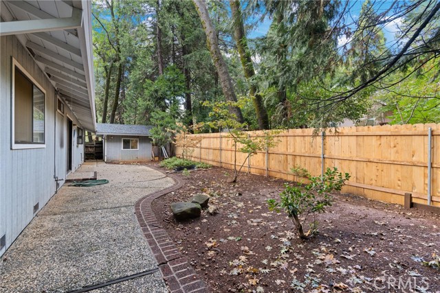 Pride of ownership shines in this 2-bedroom, 2-bath, 1,534 sq. ft. home located in the beautiful community of Magalia. Step inside to find stunning open-beam vaulted wood ceilings, a cozy wood-stove, and a spacious open layout. The large laundry/utility room offers extra convenience and storage. Outside, enjoy a fully fenced backyard complete with a storage room featuring a faucet and cabinets—perfect for an office, studio, or bonus space. A charming pond feature and concrete patio, accessible through the living room slider, make it ideal for outdoor entertaining. Nestled on a peaceful cul-de-sac, this home is move-in ready and full of charm.