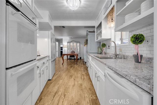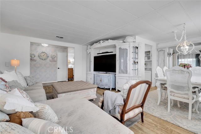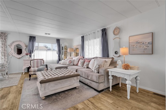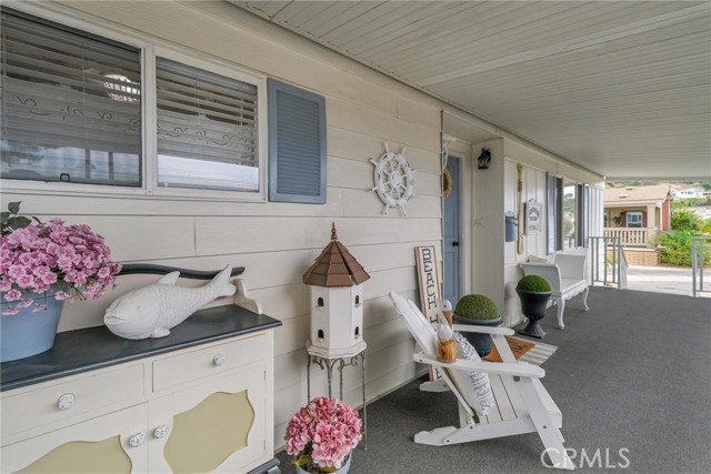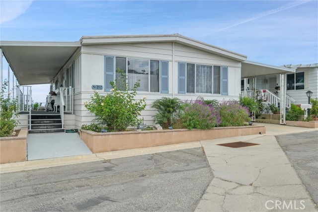 A Beautiful Doublewide Mobile Home with Beach Cottage Design Accents, Magnanimous Views of the DTLA City Lights and Bluff Views all the way to the Harbors! Feel that Ocean Breeze at the top of the Hillside where thiis completely and recently Upgraded home lies in the much sought after Skyline Mobile Park! You will exhale with peace and tranquility when you enter this Gorgeous and Affordable Home! From the scent of the front garden entrance with their David Austin Roses and the scattered Lavender Mexican Sagebrush Flowers, to the Patio Deck Entrance with an invitation to this Gloriously Upgraded Home, with pine composite wood flooring and the freshly painted white paneled wooden walls. The Living room is comfortably spacious and connects to the dining room with it;s white wooden hanging lamp, nearby newly installed Blinds to enjoy the western sunlight and some Rose patterned curtains and builtin cabinets to keep your favorite items and pictures. As you glide through, the Bright Kitchen with all it's recent upgrades, New Refrigerator, New Stove, Broiler Oven and New Gas Burner Stovetop, New Dishwasher is also connected to both the second dining room area space near the Entry way. The Bedrooms are both Relaxing and Spacious with Mirrored Closet Doors. The Master Bedroom boasts of a walk-in closet and connects to the Master Bathroom which is freshly upgraded with a splash of various Platinum and light colored countertops and a walk in shower with clear glass doors and lots of shelfing for your personal products. There is a dedicated Laundry room which has an exit door to the covered carport space and shed, and it will bring you back to the beautiful bluff views in the back for more Ahhhh....Views!! This is a Gorgeous home and it is waiting for you to claim it!!!