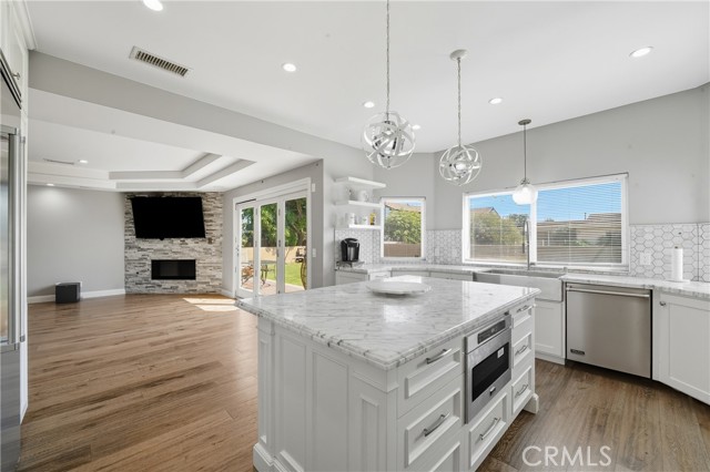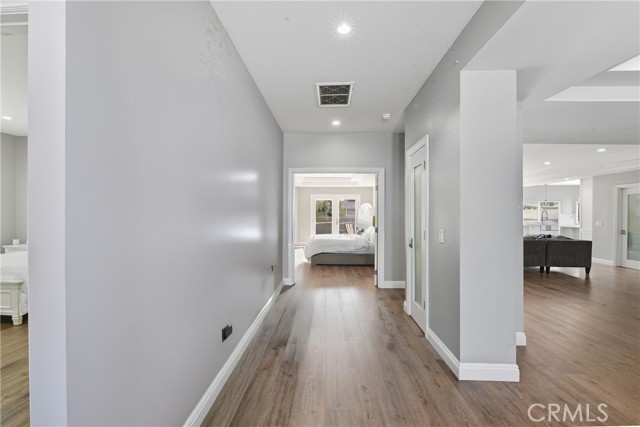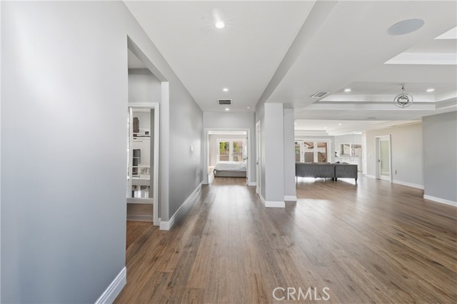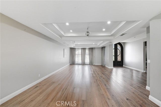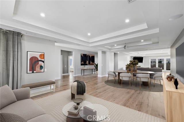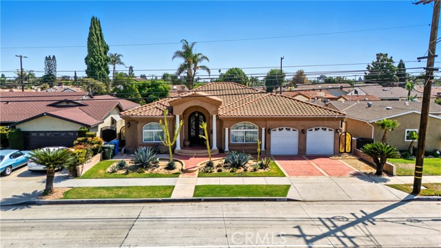 Welcome to 10702 Old River School Rd, an exceptional modern Spanish-style residence offering sophistication and comfort in the heart of Downey. Perfectly located across from Rio Hondo Golf Course, this home showcases timeless curb appeal with its arched entryways, tiled roof, and desert-inspired landscaping. Inside, the home opens into an expansive open-concept living and dining area with hardwood floors, recessed lighting, and dramatic tray ceilings that create a light-filled, airy atmosphere. The layout flows seamlessly into the gourmet kitchen, complete with custom cabinetry, sleek counters, and a large island ideal for both casual dining and entertaining. The grand master suite is a true retreat, featuring a spacious walk-in closet with built-in organizers and a spa-inspired bathroom. Relax in the freestanding soaking tub framed by picture windows or refresh in the oversized walk-in rainfall shower accented with designer tile. Dual vanities and elegant finishes complete the suite’s luxury feel. Two additional bedrooms are thoughtfully connected by a stylish Jack & Jill bathroom with double sinks and modern lighting. On the opposite side of the home, a private 4th bedroom with its own full bath offers the perfect setup for guests or multigenerational living. The home also includes a guest half bath for added convenience, a dedicated laundry room with built-in storage, and direct garage access for everyday functionality. A spacious family/media room with a custom stone fireplace wall adds to the home’s versatility and comfort. Outdoors, the generous backyard provides endless possibilities — perfect for entertaining, gardening, or simply enjoying the California sunshine. Nestled in a highly sought-after pocket of Downey, this home is just minutes from acclaimed schools like Rio Hondo Elementary, Griffiths Middle, and Warren High, local favorites including Porto’s Bakery, Tropicana Bakery & Cuban Café, and downtown Downey’s vibrant restaurant scene. For commuters, the property offers quick freeway access to the 5, 605, and 710, putting Los Angeles and Orange County within easy reach. Come by and see it for yourself!