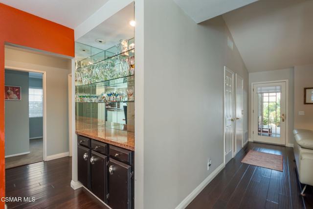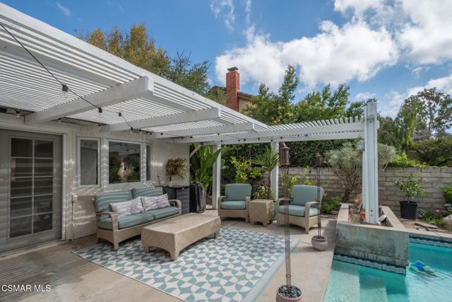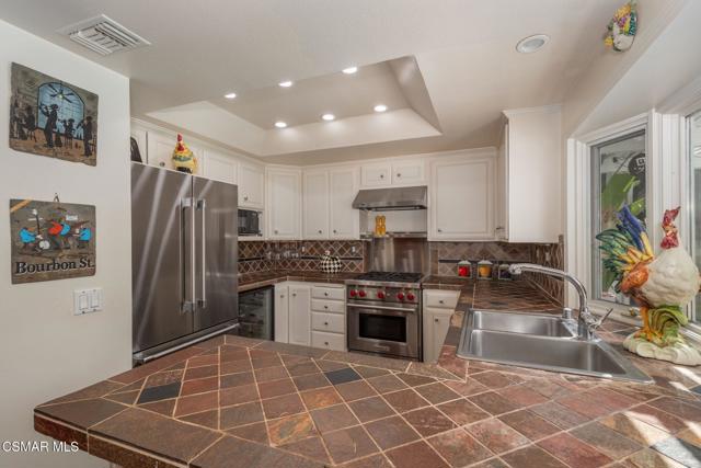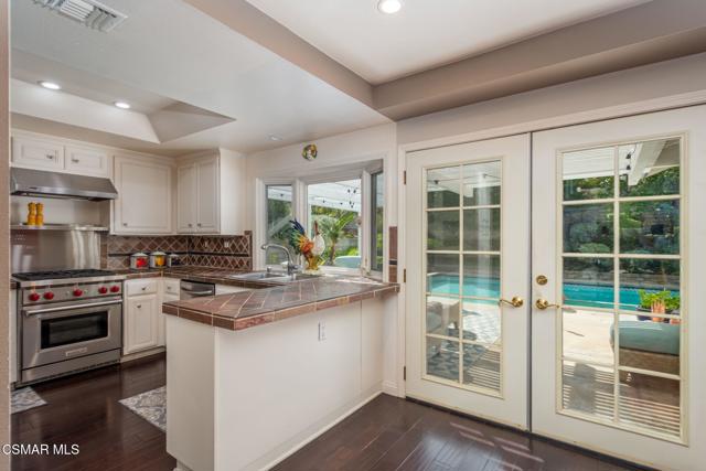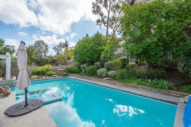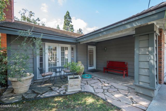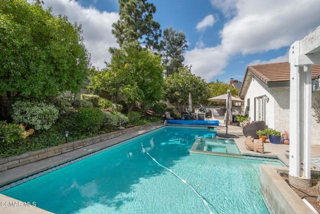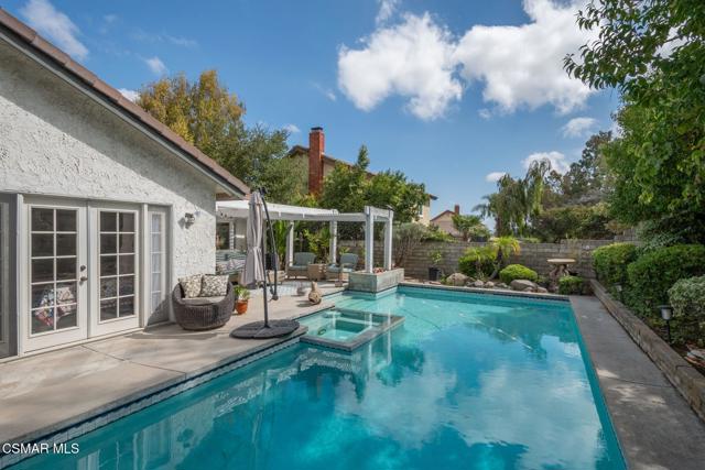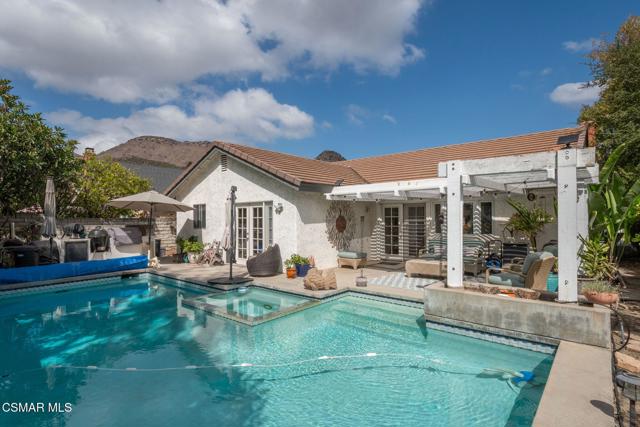 Upgraded single story pool home with a cul de sac location. Custom glass front door leads you into this inviting home. Remodeled living room area with architectural features and a tiled fireplace, hardwood flooring & french doors. Upgraded kitchen with slate countertops and a Wolfe gourmet stove & stainless appliances. Refrigerator & wine refrigerator are included. Other kitchen features include coffered ceilings, recessed lighting and a pella bay window. Hall bath with custom countertops, travertine tile flooring and recessed lighting. Newer carpet in all bedrooms. Primary bedroom with french doors to the pool area. Primary bath with custom tile in the shower area. Primary shower with frameless glass enclosure, also the bath has an upgraded countertop, sink & vanity. Both baths also have newer Kohler toilets. Entertainers backyard with privacy featuring a pool, spa, built in barbecue & a covered patio area to relax and enjoy the beautiful backyard. 2 car finished garage with built in storage and overhead storage. This upgraded home also has dual pane windows, 4 sets of french doors, upgraded interior doors, LED recessed lighting throughout. and newer exterior paint.