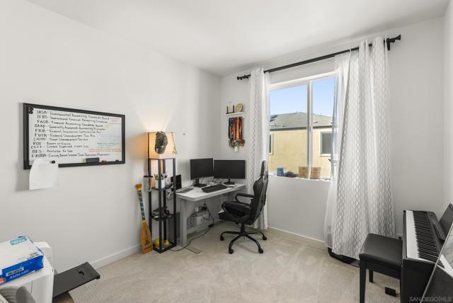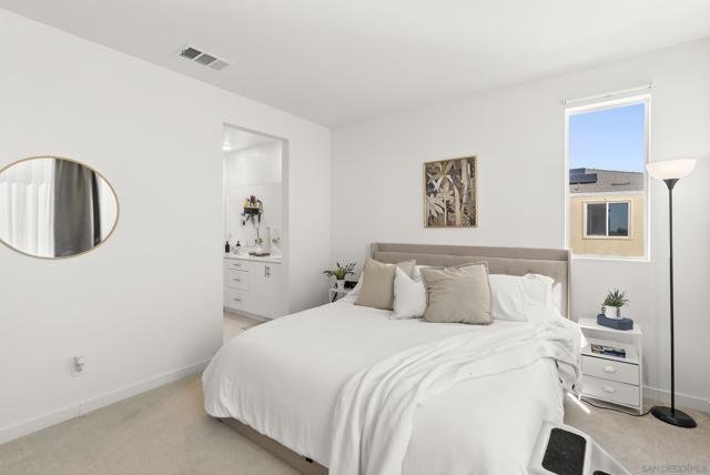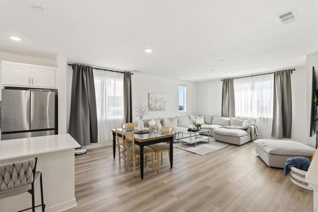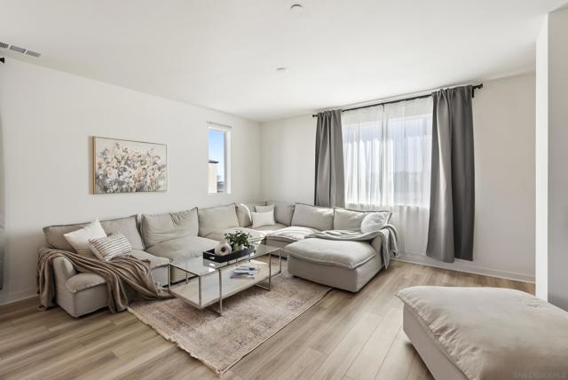 Welcome to this light-filled 2024-built corner unit in Otay Mesa, where modern design meets everyday convenience. This thoughtfully crafted tri-level residence offers 4 bedrooms and 3.5 bathrooms, blending style, comfort, and flexibility for today’s lifestyle. The first-floor bedroom with a full bath provides the perfect setup for guests, extended stays, or a quiet home office. Upstairs, the open-concept living area is framed by soaring ceilings, durable LVP flooring, and an upgraded kitchen with white cabinetry, stainless steel appliances, and a striking blue backsplash. Just off the kitchen, a balcony offers a peaceful space for morning coffee or evening downtime. On the top floor, the primary suite provides a true retreat with its private en-suite bathroom and spacious walk-in closet, while the secondary bedrooms and convenient upstairs laundry complete the thoughtful layout. Extra natural light flows throughout thanks to the corner unit position, creating a warm and welcoming feel. The community offers green spaces, dog runs, and a park right outside your front door — an inviting place to relax, connect, or let little ones play. A two-car garage completes the package with everyday practicality. Ideally located with easy access to the 905 and 805 freeways, you’re minutes from shopping, dining, and the border. Whether commuting or staying close to home, this residence offers both comfort and connection. Don’t miss this modern home designed for effortless living in a prime San Diego location.
